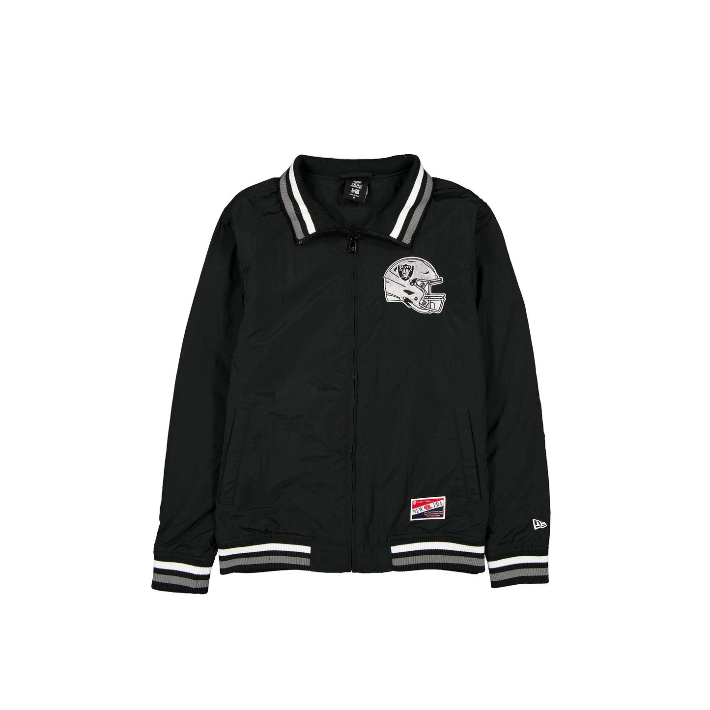 The Las Vegas Raiders Throwback Nylon Jacket features a nylon applique Raiders graphic embroidered at the front left chest and rear. Addition details a full-zip closure and front pockets.