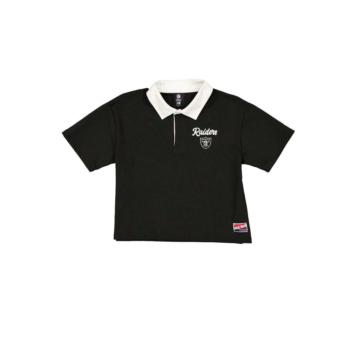 The Las Vegas Raiders Throwback Women's Cropped Polo features an embroidered Raiders wordmark and logo at the left chest with a buttoned color.