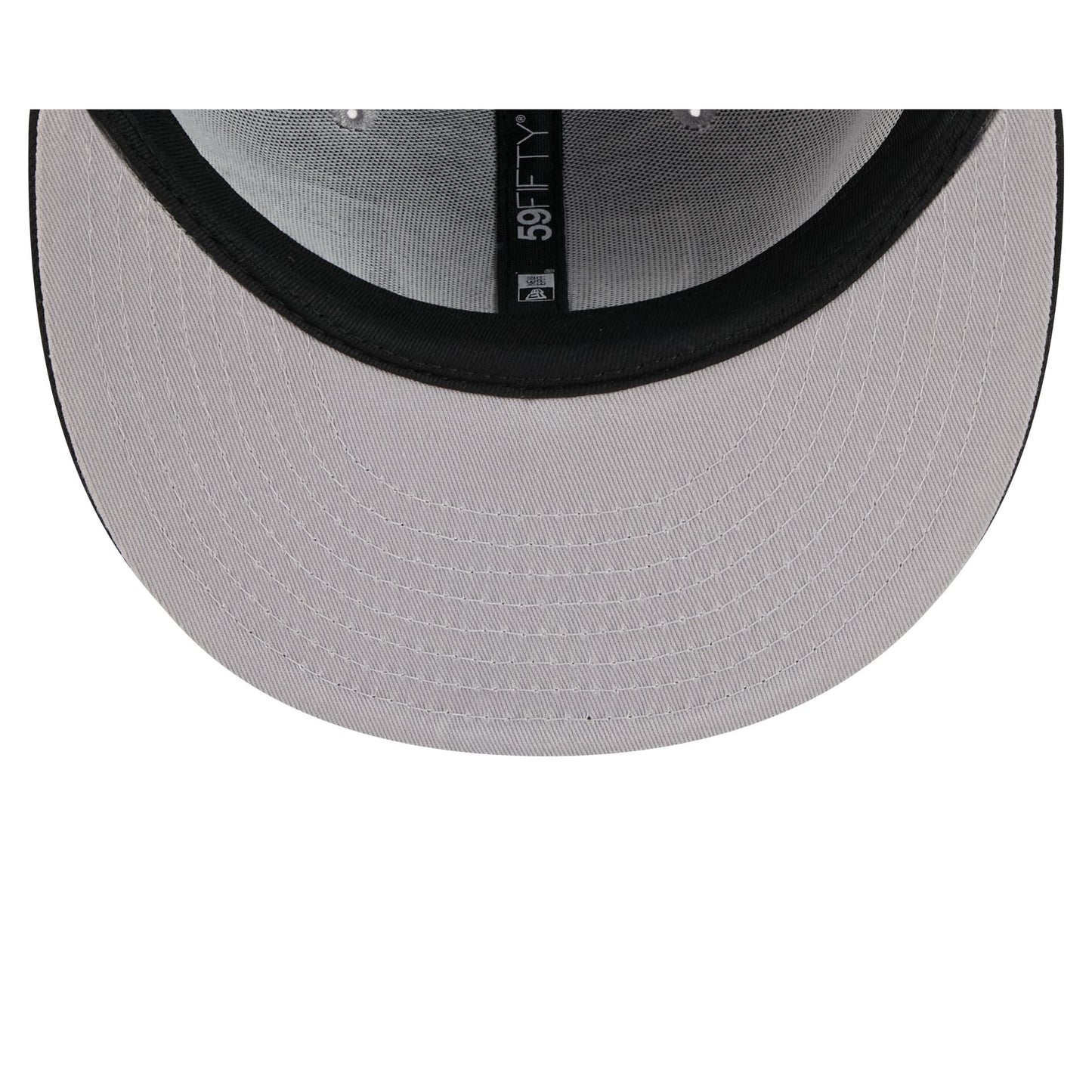 The Las Vegas Raiders Tidal Flow 59FIFTY Fitted Cap features an embroidered Raiders logo at the front panels with tidal waves throughout the cap and a gray undervisor.