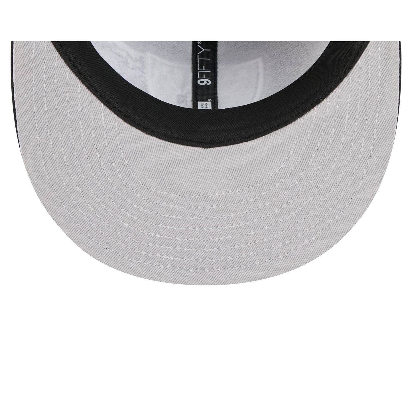 The Las Vegas Raiders Tidal Flow Retro Crown 9FIFTY Adjustable Cap features an embroidered Raiders logo at the front panels with tidal waves throughout the cap. Additional details include an adjustable snapback closure at the rear and a gray undervisor.