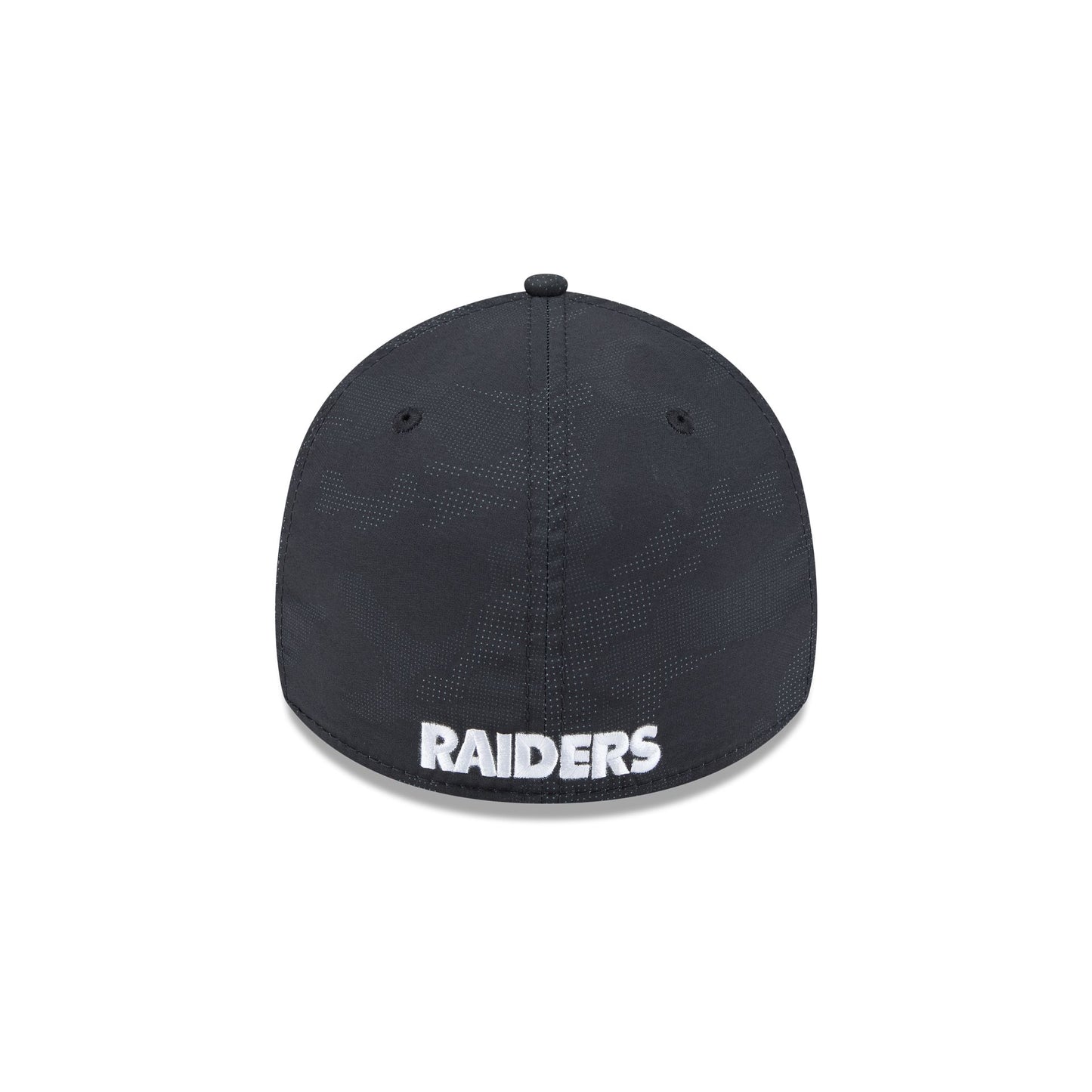 The Las Vegas Raiders Tonal Camo 39THIRTY Stretch-Fit Cap features an embroidered Raiders logo at the front panels with a camo fabrication throughout with a wordmark at the rear and a gray undervisor.