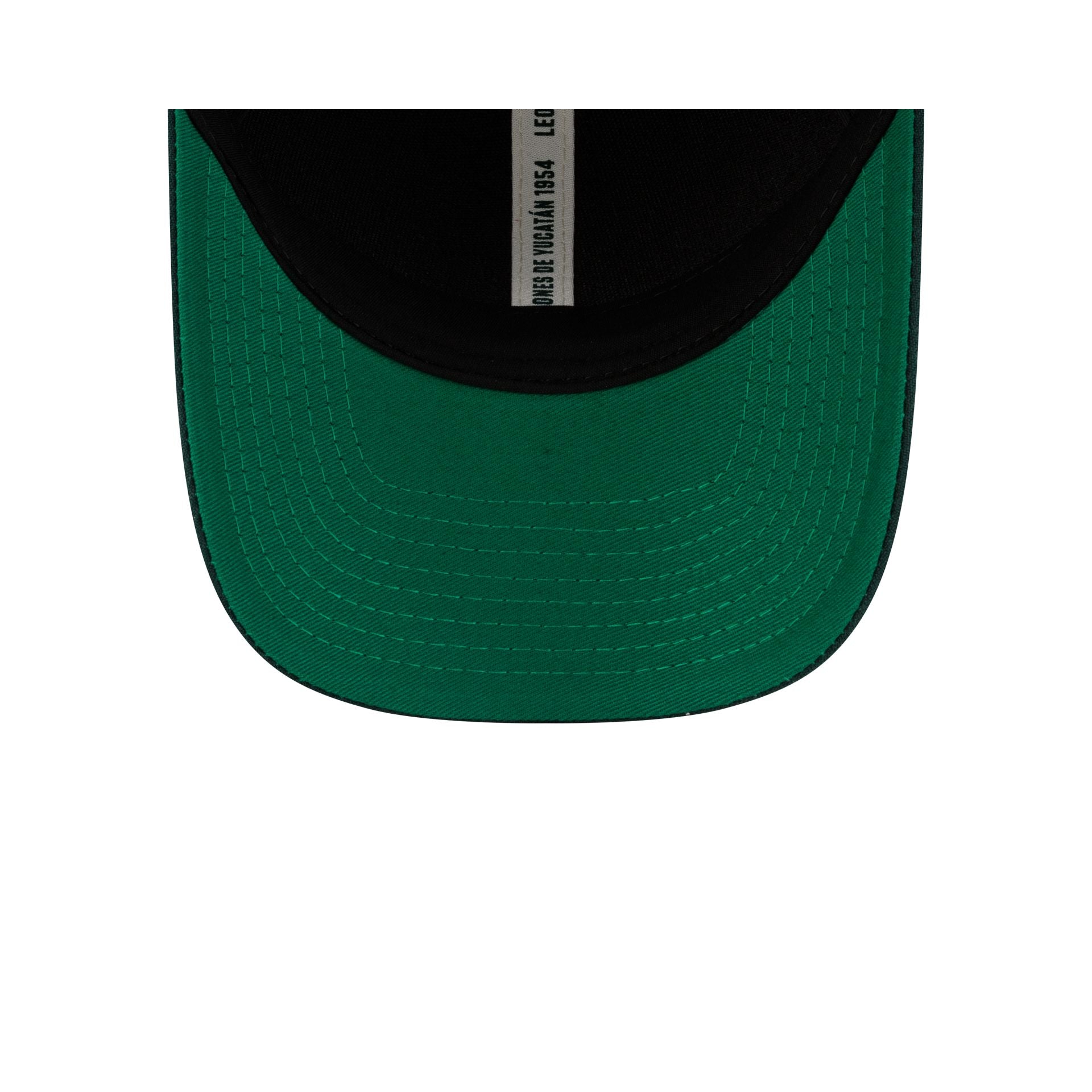The Leones de Yucatán Retro 9FORTY M-Crown Snapback features an embroidered Leones retro logo at the front panels with a 100th Anniversary LMB logo above an adjustable snapback closure at the rear.