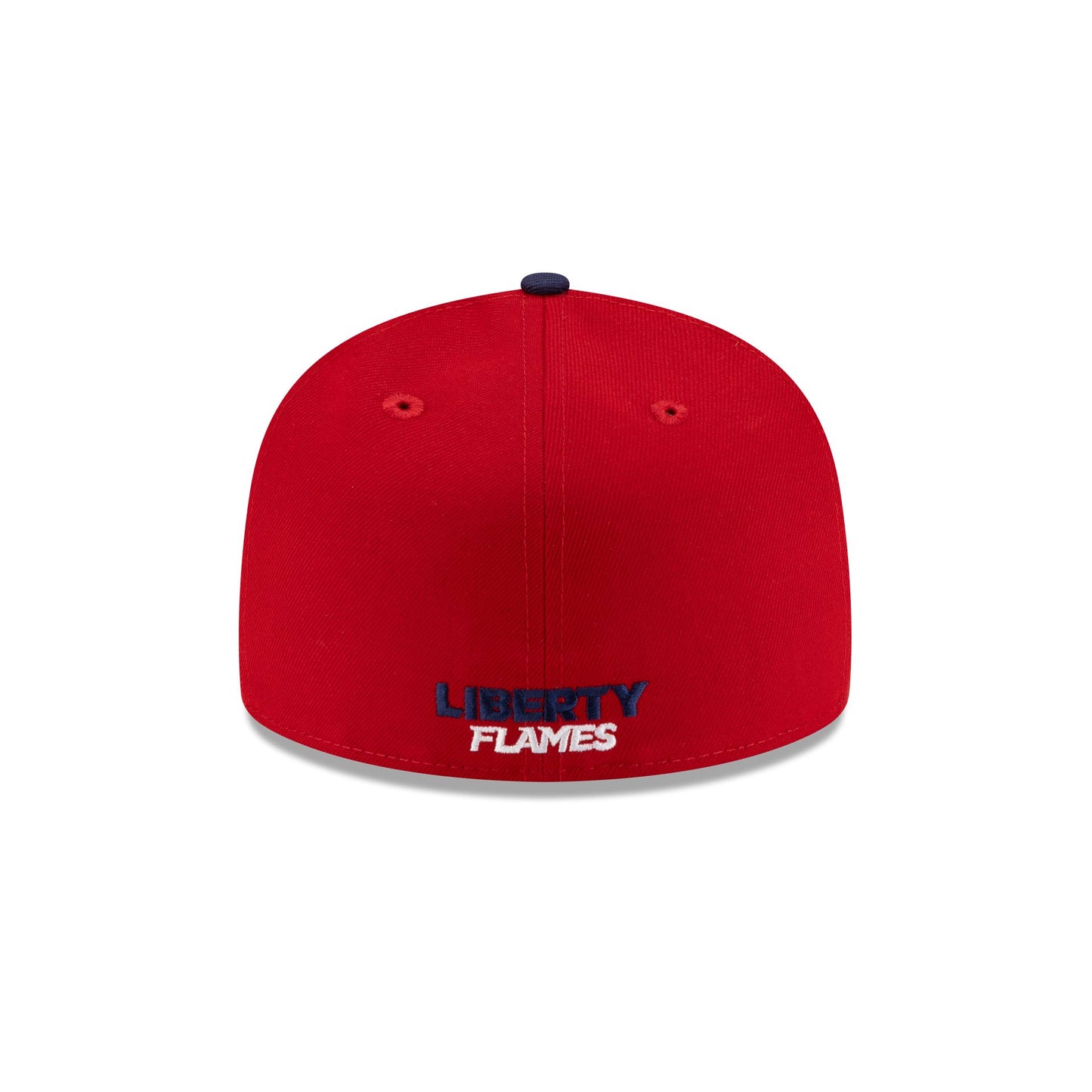 The Liberty Flames Scarlet 59FIFTY Fitted Cap features an embroidered Flames logo at the front panels with a wordmark at the rear and a gray undervisor.