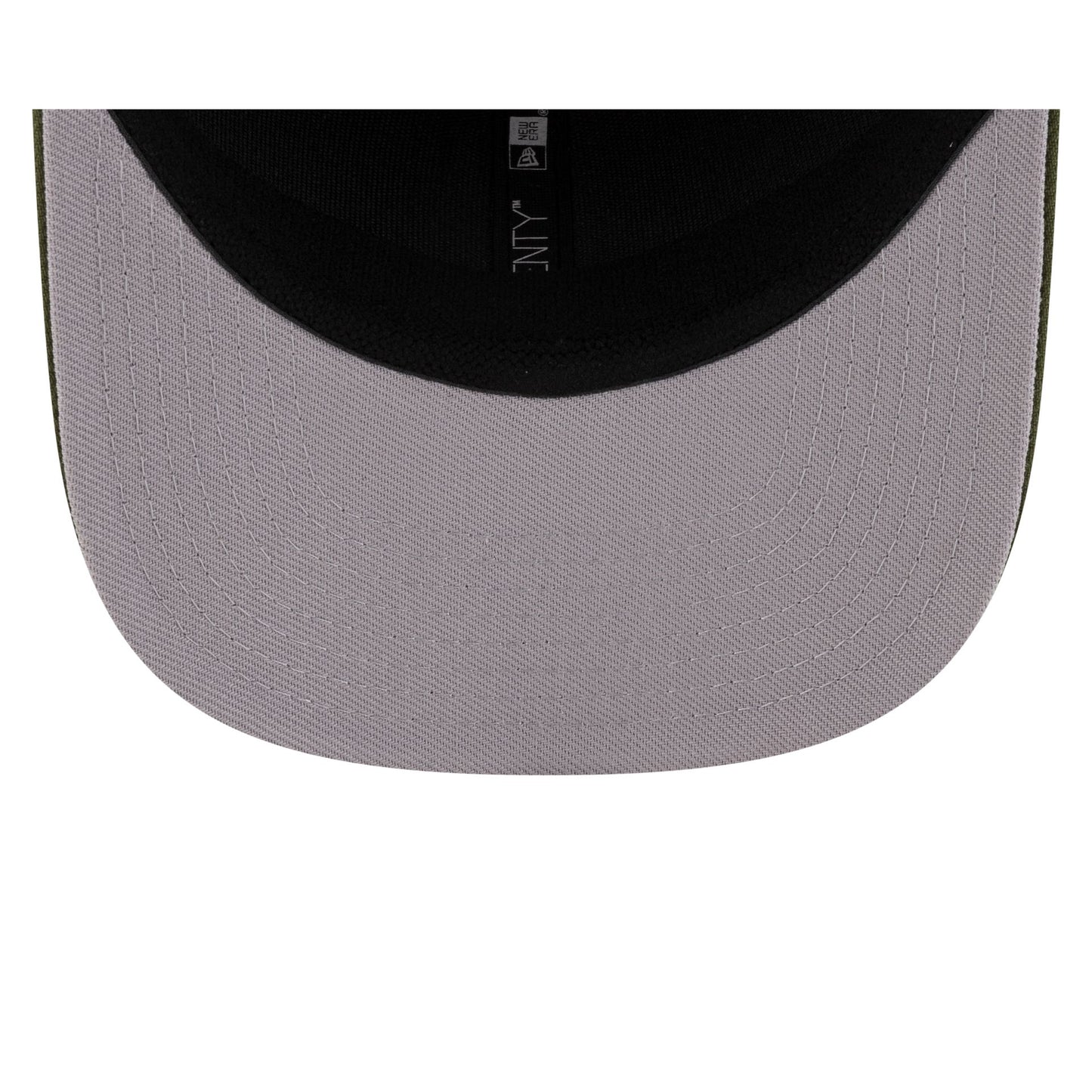 The Looney Tunes Foghorn Leghorn Rifle Green 9SEVENTY Stretch-Snap Cap features Foghorn Leghorn embroidered at the front panels with a Looney Tunes logo above a snapback closure at the rear and a gray undervisor.