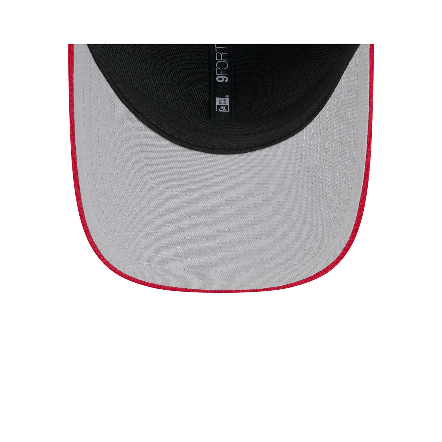 The Los Angeles Angels 2025 Batting Practice 9FORTY M-Crown Snapback features an embroidered Angels logo at the front panels with a snapback closure at the rear and a gray undervisor.