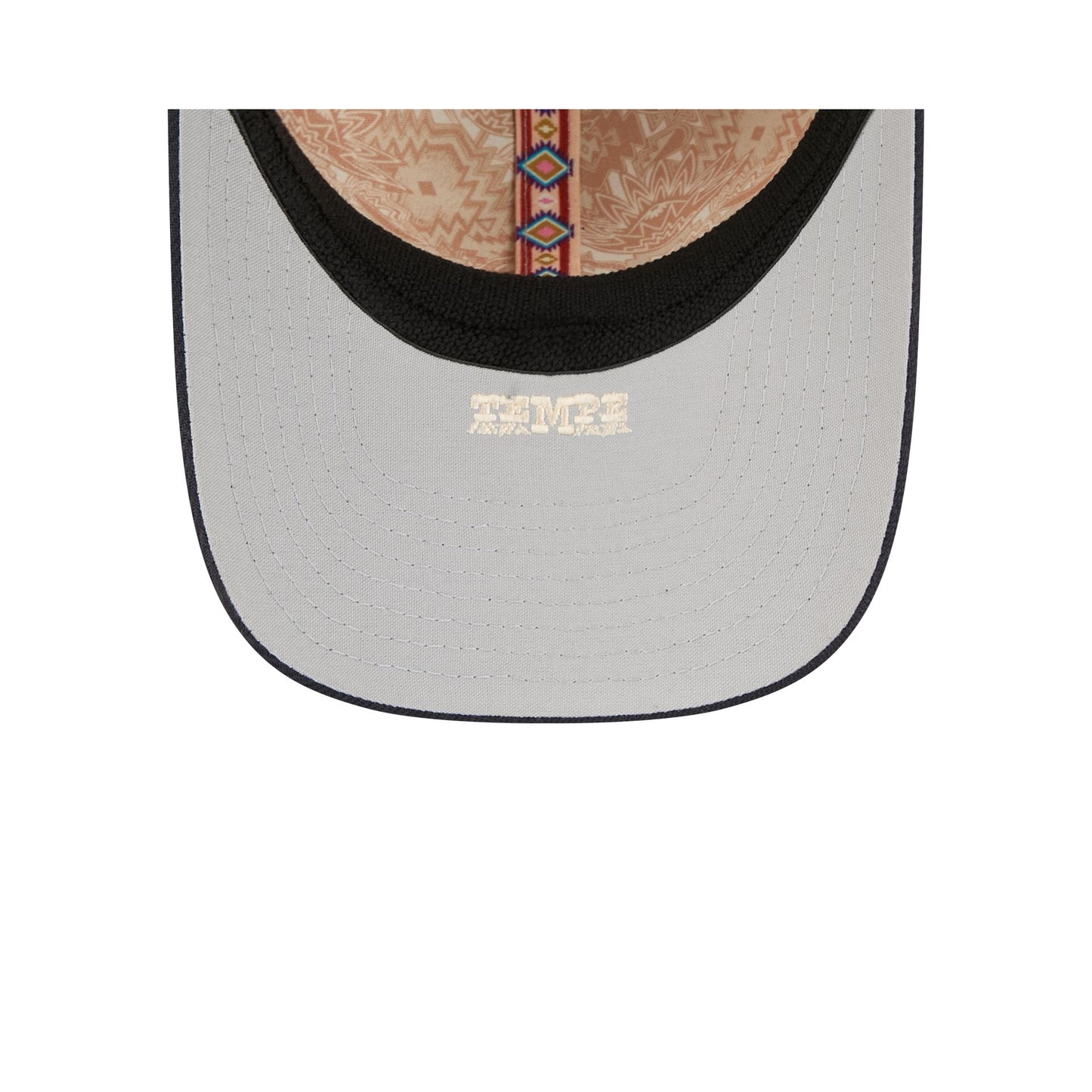 The Los Angeles Angels 2026 Spring Training 39THIRTY M-Crown Stretch Fit features an embroidered floral Angels logo at the front panels with a 2026 Spring Training patch at the right-wear side and the MLB Batterman logo at the rear. Additional details include an embroidered spring training location at a gray undervisor and a floral lining.