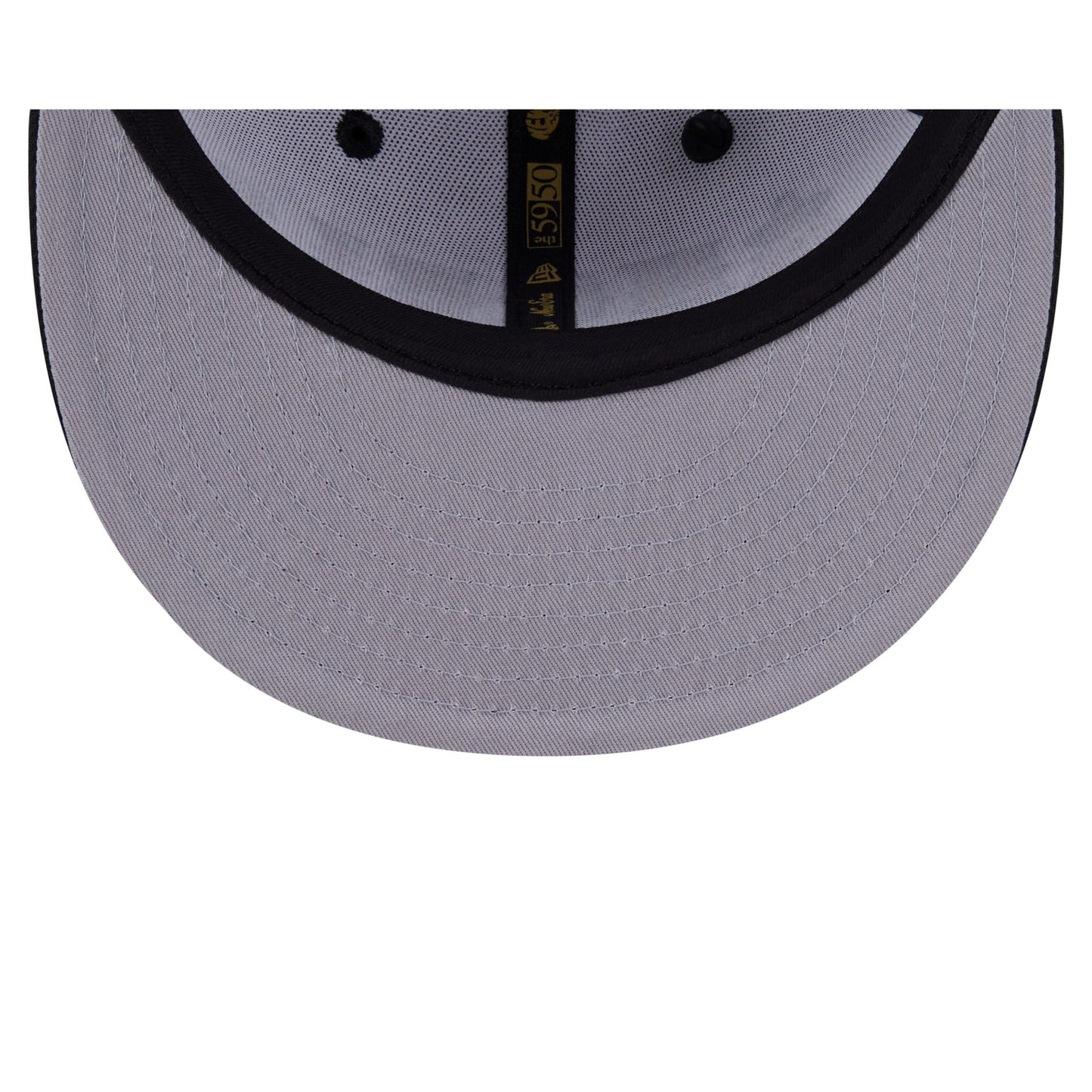 Celebrate 70 years of the iconic Fitted Cap this 59FIFTY Day! The Los Angeles Angels 70th Anniversary 59FIFTY Fitted Cap features a gold embroidered Angels Cooperstown wordmark and a 59FIFTY 70th Anniversary pin at the front panels with a matching MLB Batterman logo at the rear. Additional details include a Angel Stadium patch at the right-wear side, a black visor, and a gray undervisor.