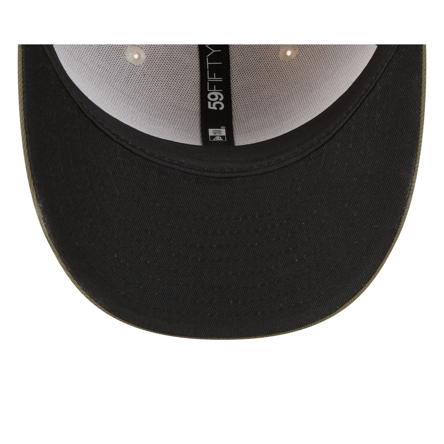 The Los Angeles Angels Armed Forces Day 2025 59FIFTY Fitted Cap features an embroidered Dodgers logo at the front panels with a matching MLB Batterman logo at the rear. Additional details include the American Flag embroidered at the right-wear side and a black undervisor. This cap comes with a pre-curved visor.