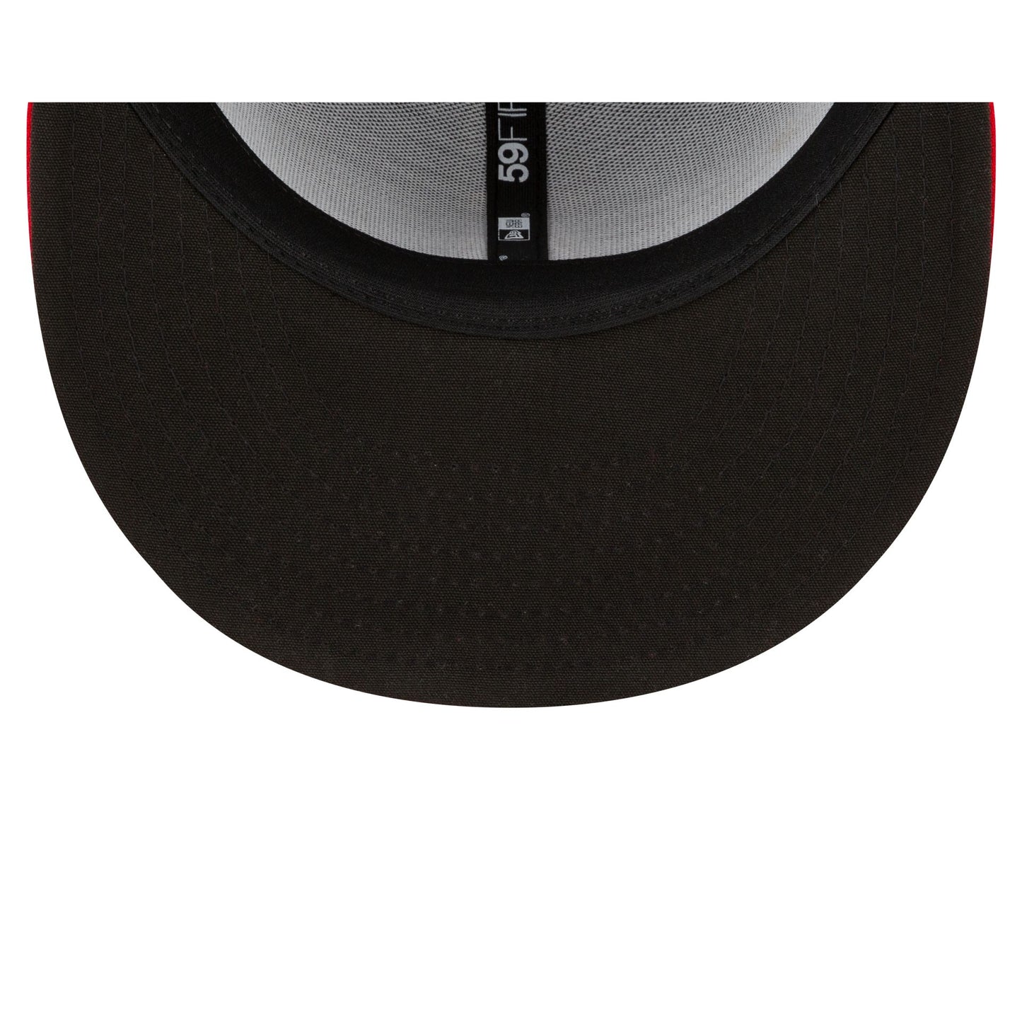 The Los Angeles Angels Authentic Collection 59FIFTY Fitted Cap features an embroidered Angels logo at the front panels with a matching MLB Batterman logo at the rear.