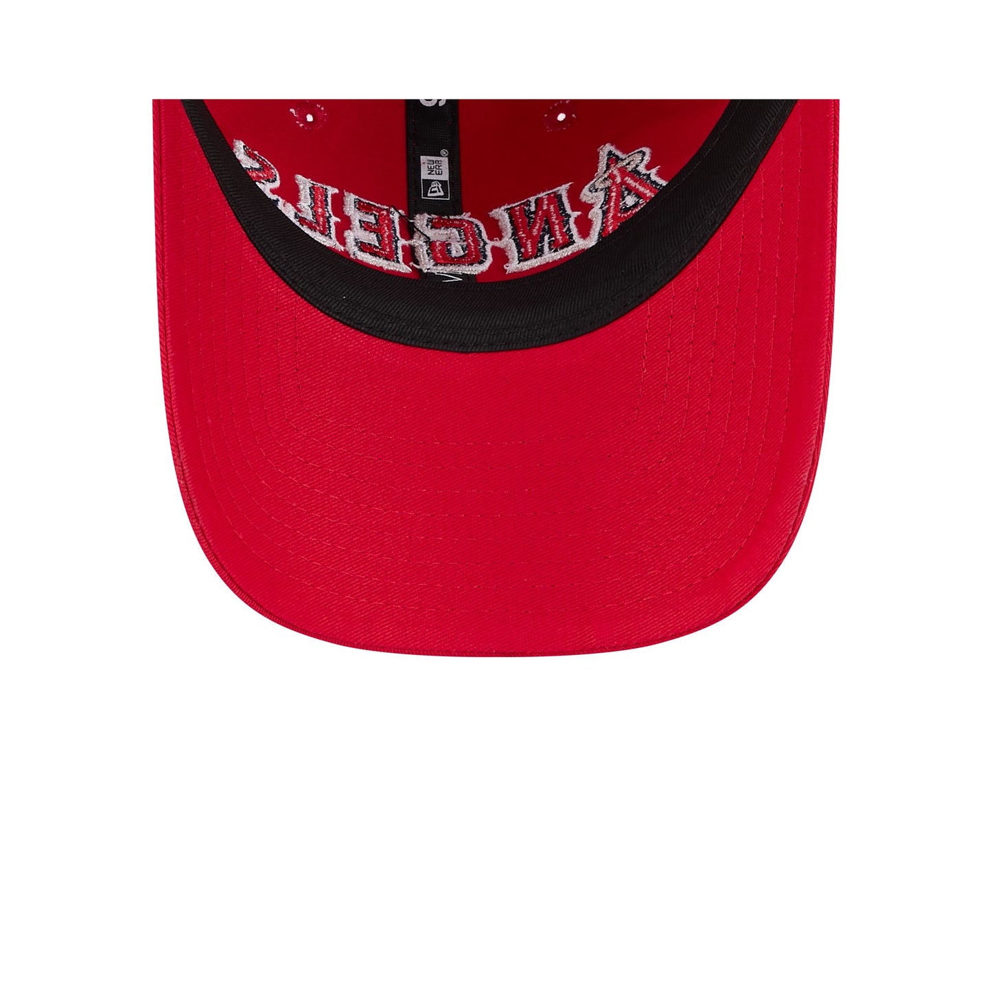 The Los Angeles Angels Championship Pack 9TWENTY Adjustable Cap features an embroidered Angels wordmark at the front panels with a 2002 patch at the right-wear side and a matching MLB Batterman logo above an adjustable D-Ring closure at the rear.