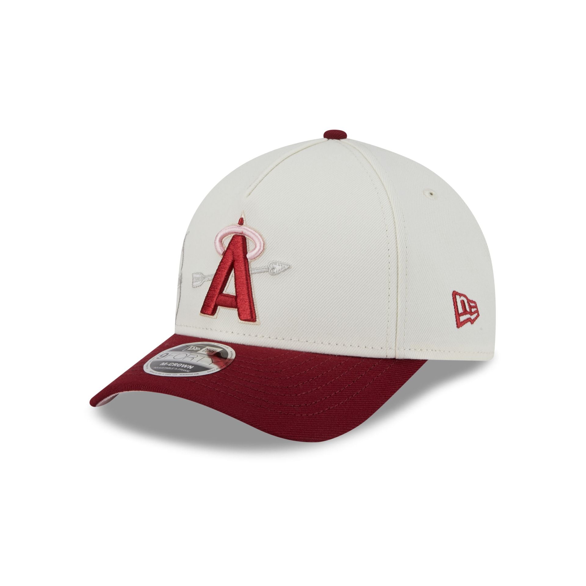 The Los Angeles Angels Cherub 9FORTY M-Crown A-Frame Snapback features an embroidered Angels logo and cherub angel at the front panels with a snapback closure at the rear and a pink undervisor.