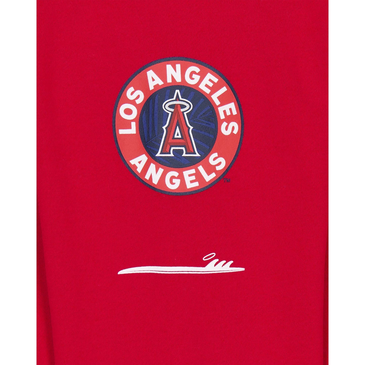 Jersey inspired, city connected. The Los Angeles Angels City Connect Red Hoodie features a screen-printed Angels wordmark and logo at the front with alternate team logos at the left sleeve.