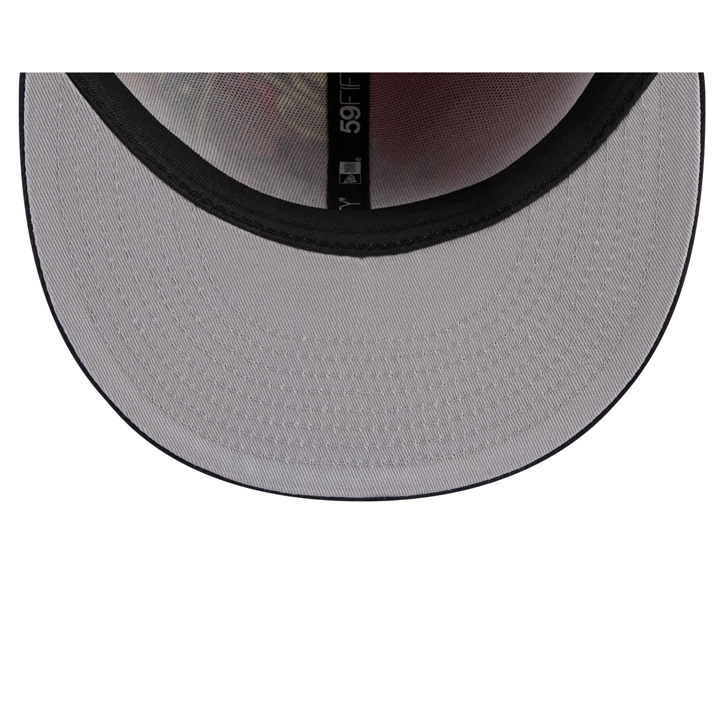 The Los Angeles Angels Diamond Hero Edition 59FIFTY Fitted Cap features an embroidered Angels onomatopoeia pop logo at the front panels with baseball comic book prints at the front and back panel. Additional details include the MLB Batterman logo at the rear and a gray undervisor.