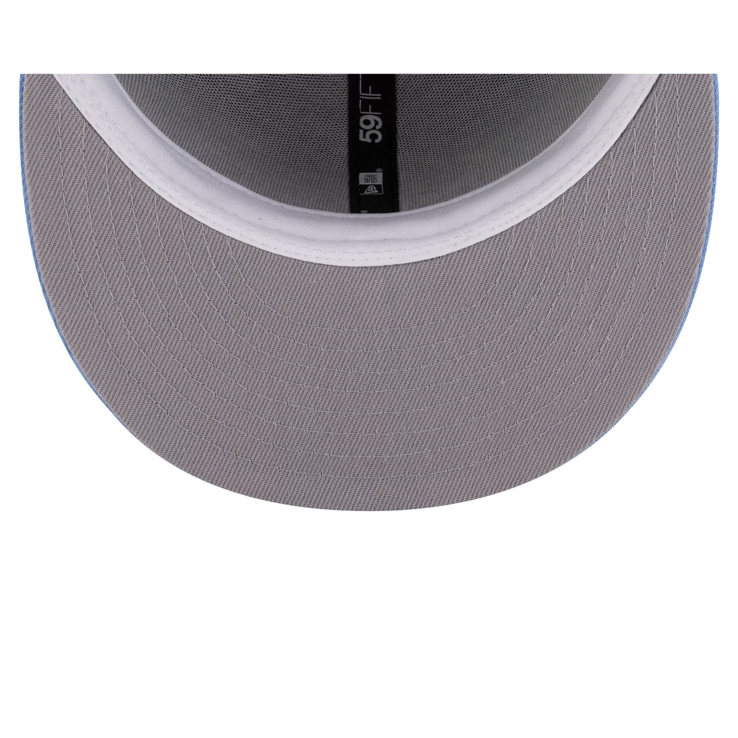 The Los Angeles Angels Mascot Light Navy 59FIFTY Fitted Cap features an embroidered Angels mascot at the front panels with a matching MLB Batterman logo at the rear. Additional details include a 40th Anniversary patch at the right-wear side and a gray undervisor,