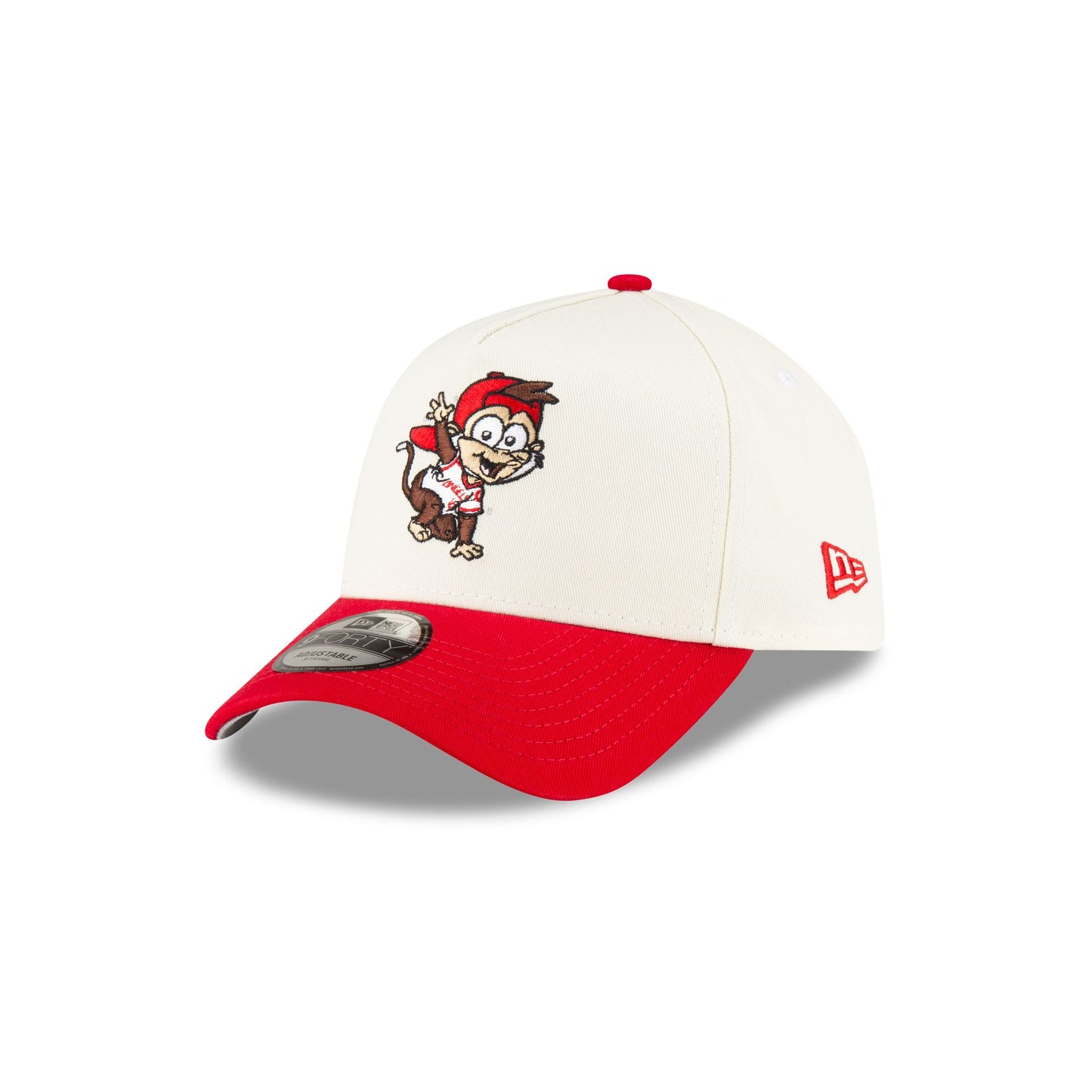 The Los Angeles Angels Mini Mascot 9FORTY A-Frame Snapback features an embroidered Angels mascot at the front panels with an Angel Stadium patch at the right-wear side and a snapback closure at the rear.