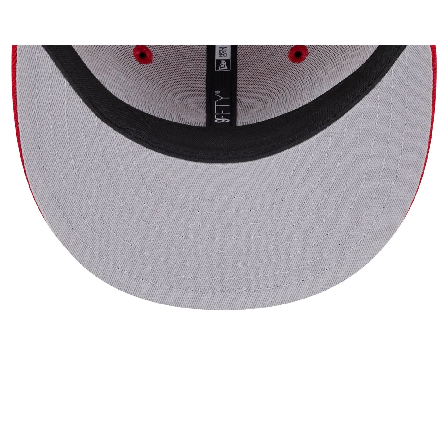 The Los Angeles Angels Kids 9FIFTY Snapback Hat features an embroidered Angels wordmark at the front panels with a matching team logo at the right-wear side. Additional details include a gray undervisor and a snapback closure at the rear.