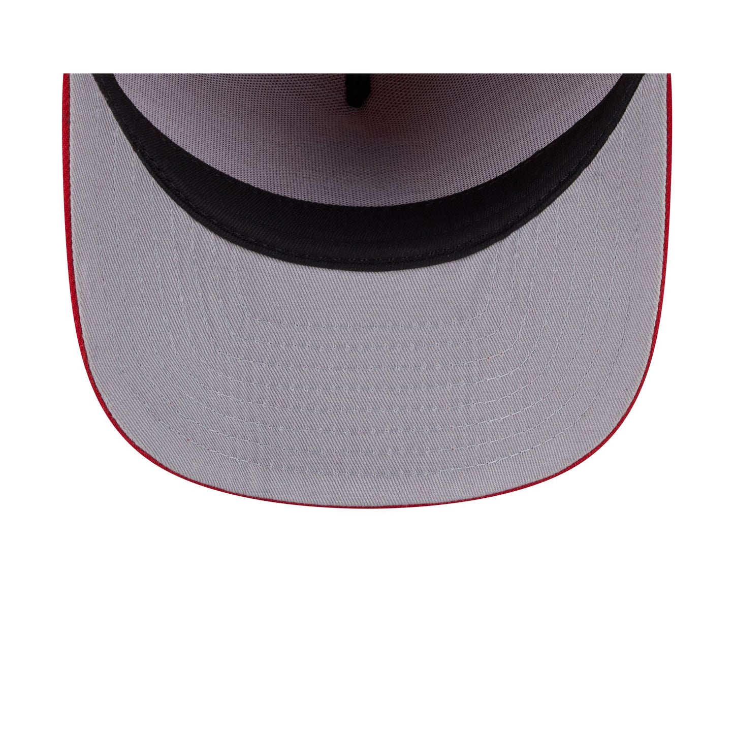 The Los Angeles Angels Stained Glass 59FIFTY A-Frame Fitted Cap features an embroidered Angels themed logo at the front with monochromatic team logo above a matching MLB Batterman logo at the rear, a pre-curved visor, and a gray undervisor.