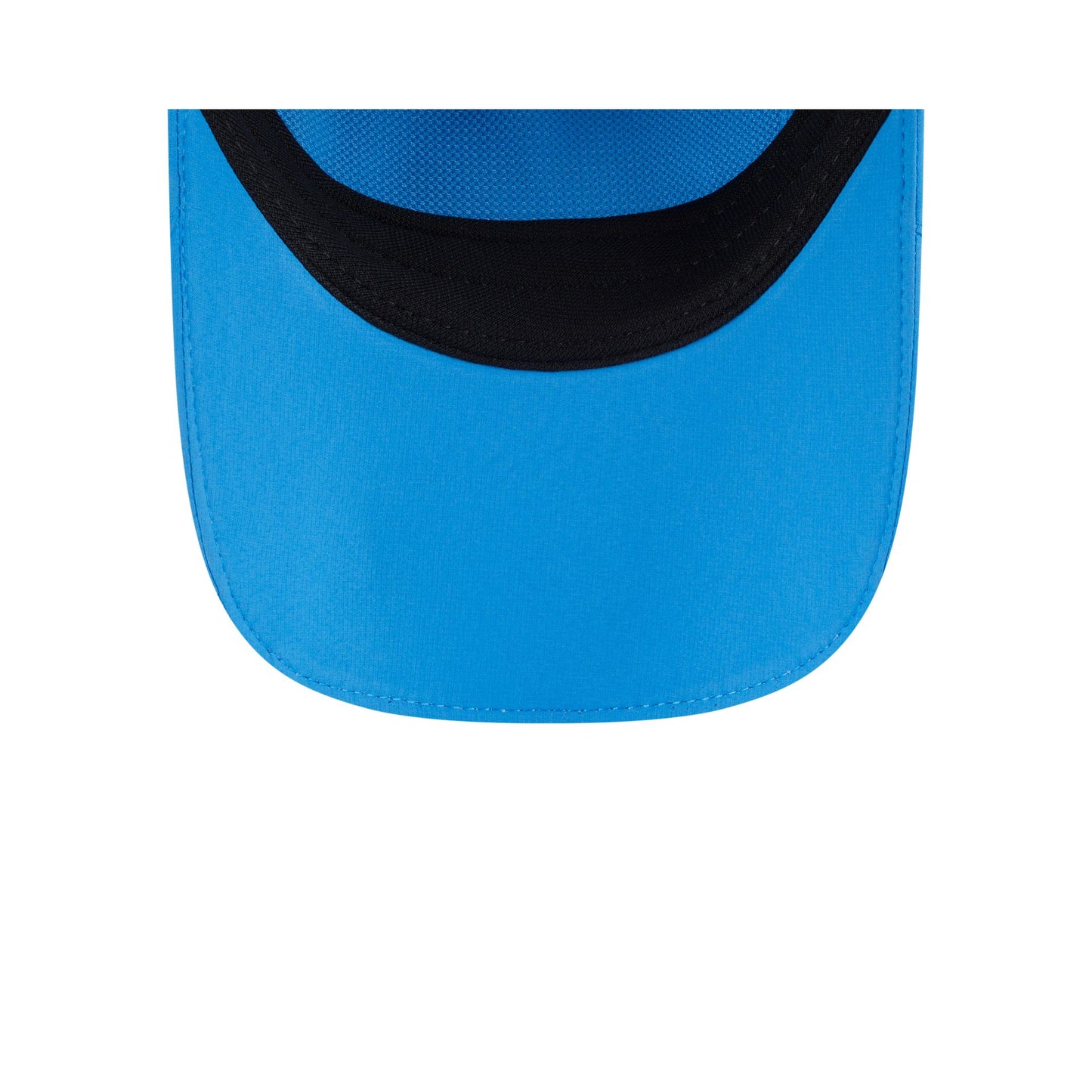 The Los Angeles Chargers 2025 Sideline Hot Weather Runner Adjustable Cap features a sewn-down silicone Chargers logo patch at the front panels with a water-repellent quill tech fabrication throughout and a quick-dry cushioned sweatband to absorb moisture. Additional details include the Official NFL Shield logo to the right of an adjustable hook-and-loop closure at the rear and mesh accents at the visor sides and side crown panels. The closure is accented with mesh a silicone transfer in the team’s colors.