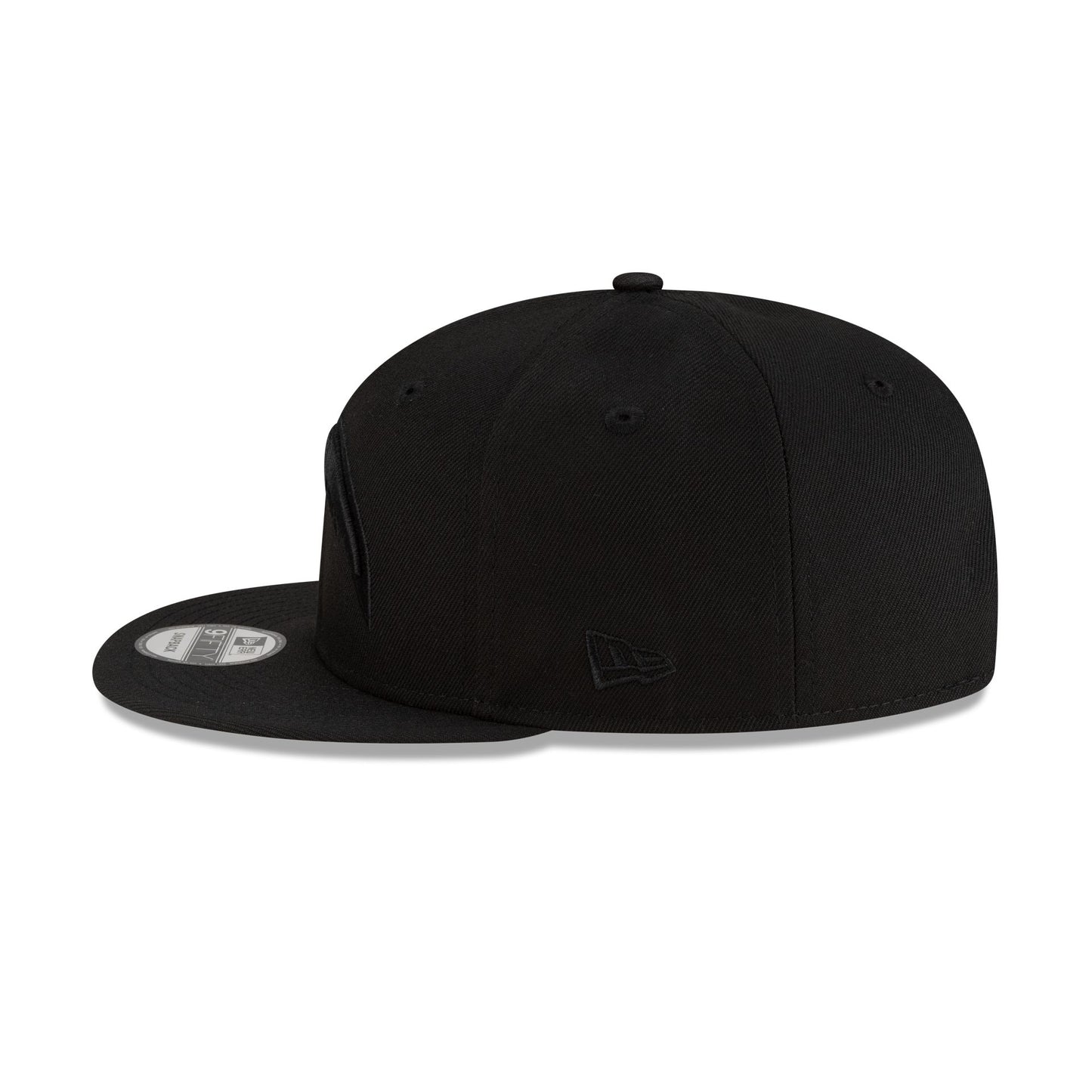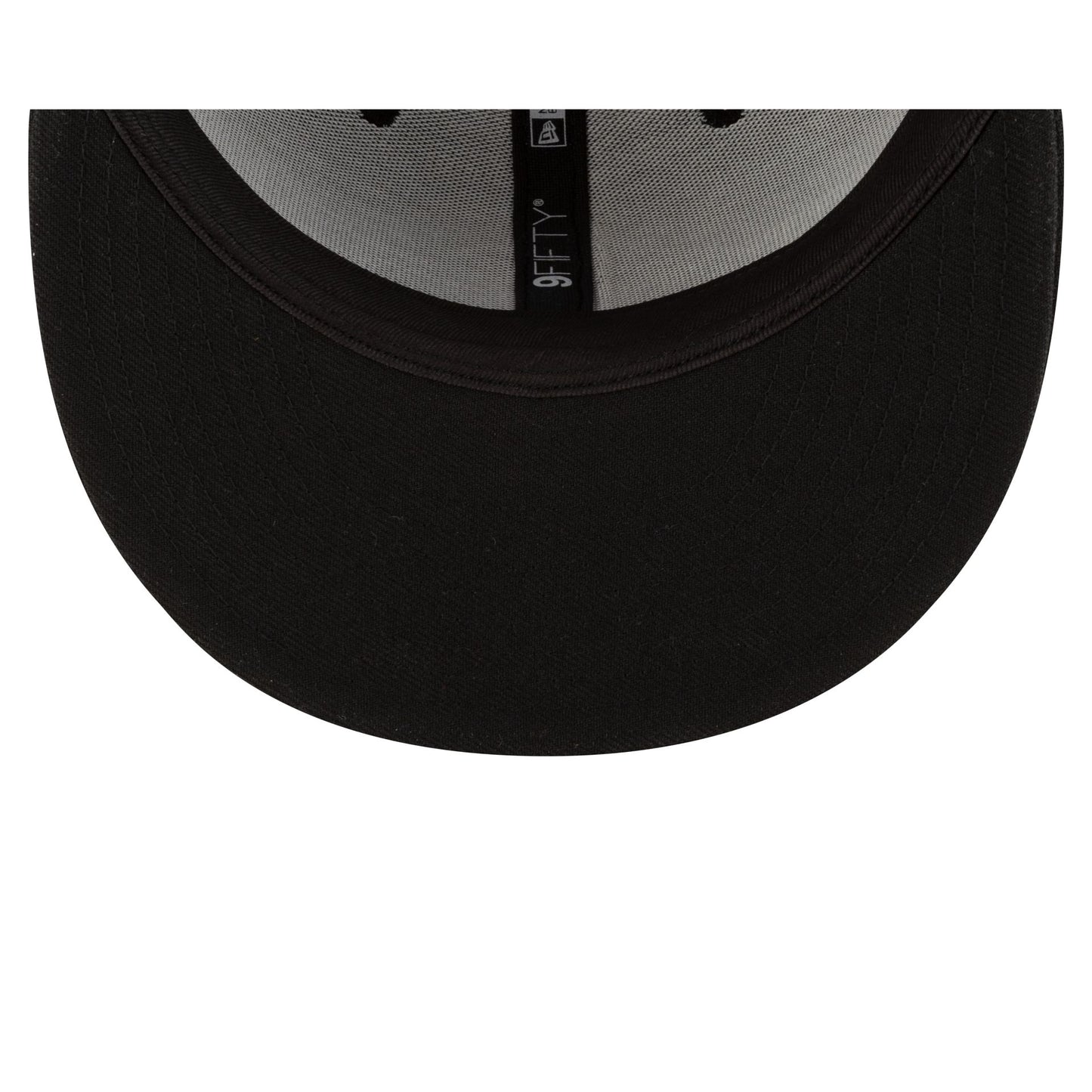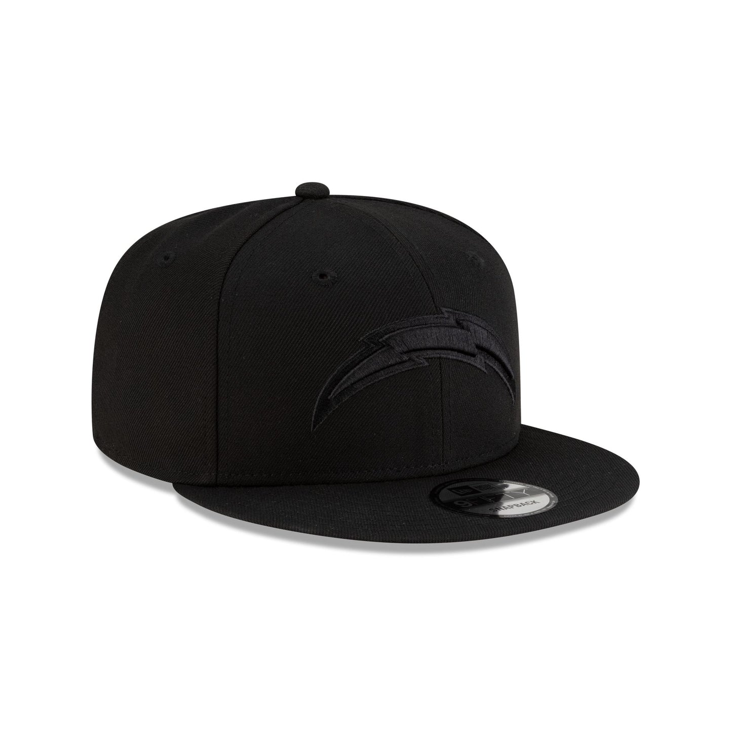 The Los Angeles Chargers Black on Black 9FIFTY Snapback features an allover black fabrication with an embroidered Chargers logo at the front panels and an adjustable snapback closure at the rear.