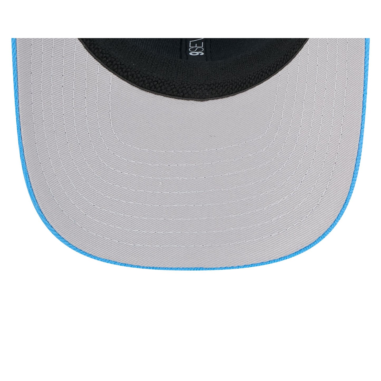 The Los Angeles Chargers Team 9SEVENTY Trucker features an embroidered Chargers logo at the front panels with a matching NFL Shield logo above an adjustable snapback closure at a mesh rear and a gray undervisor.