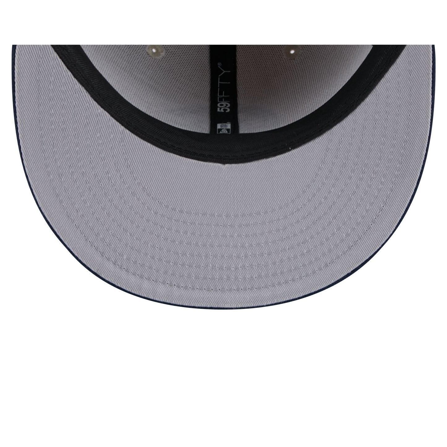The Los Angeles Clippers 2025 All-Star Game Fan Pack 59FIFTY Fitted Cap features an embroidered Clippers logo at the front panels with a matching NBA Logoman at the rear. Additional details include a sneaker patch at the right-wear side and a gray undervisor.
