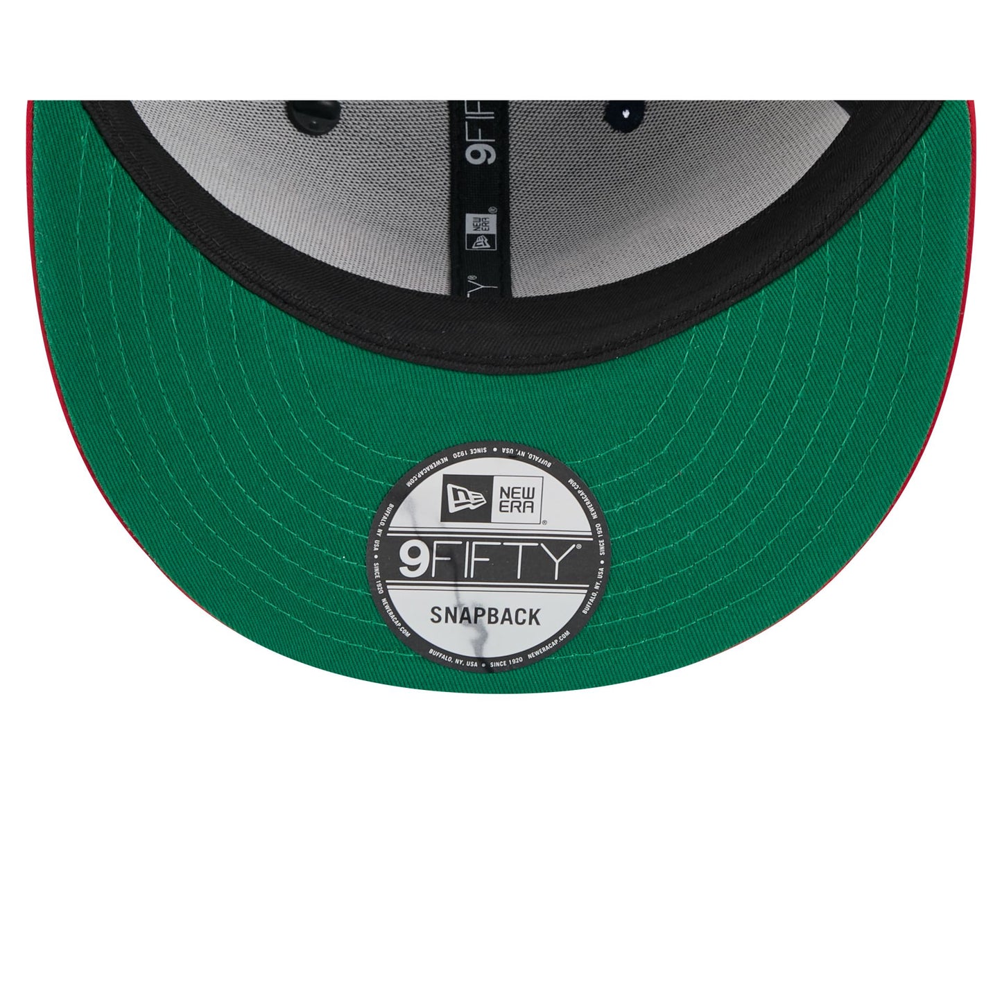 The Los Angeles Clippers Satin Pin 9FIFTY Snapback features an embroidered Clippers wordmark at the front panels against a satin fabrication throughout the cap and a logo at the right-wear side. Additional details include a New Era Pin at the front left panel a snapback closure at the rear, and a green undervisor.