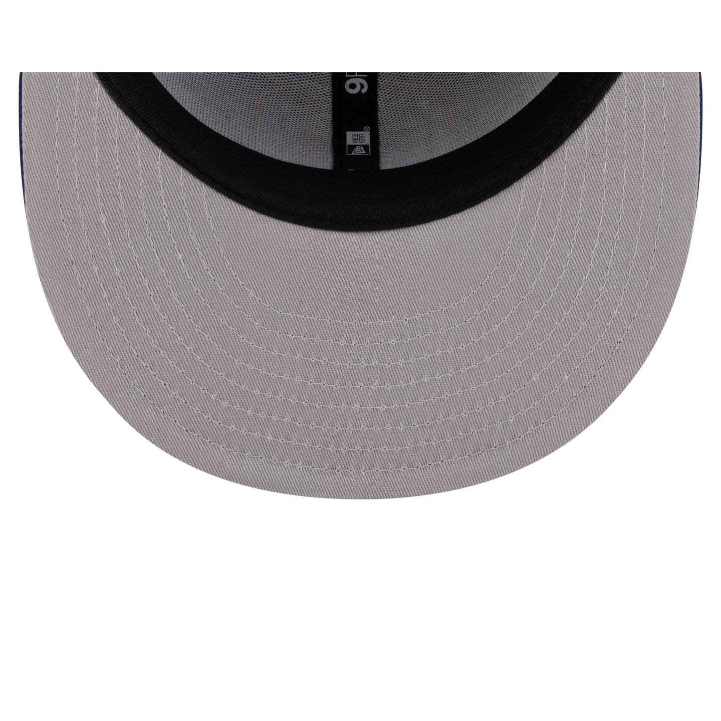 The Los Angeles Dodgers 1984 Olympics 9FIFTY Snapback features an embroidered Dodger Stadium Olympic Baseball patch at the front panels with a Dodgers logo at the right-wear side. Additional details include an adjustable snapback closure at the rear and a gray undervisor.