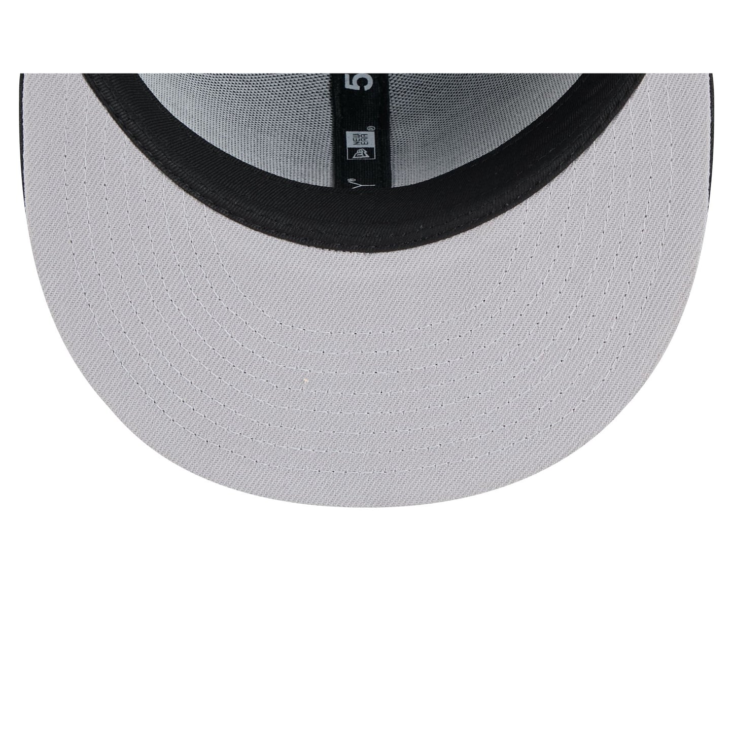 The Los Angeles Dodgers 2024 World Series Champions Black 59FIFTY Fitted Cap features an embroidered Dodgers logo at the front panels with a matching MLB Batterman logo at the rear, a 2024 World Series Champions patch at the right-wear side, and a gray undervisor.