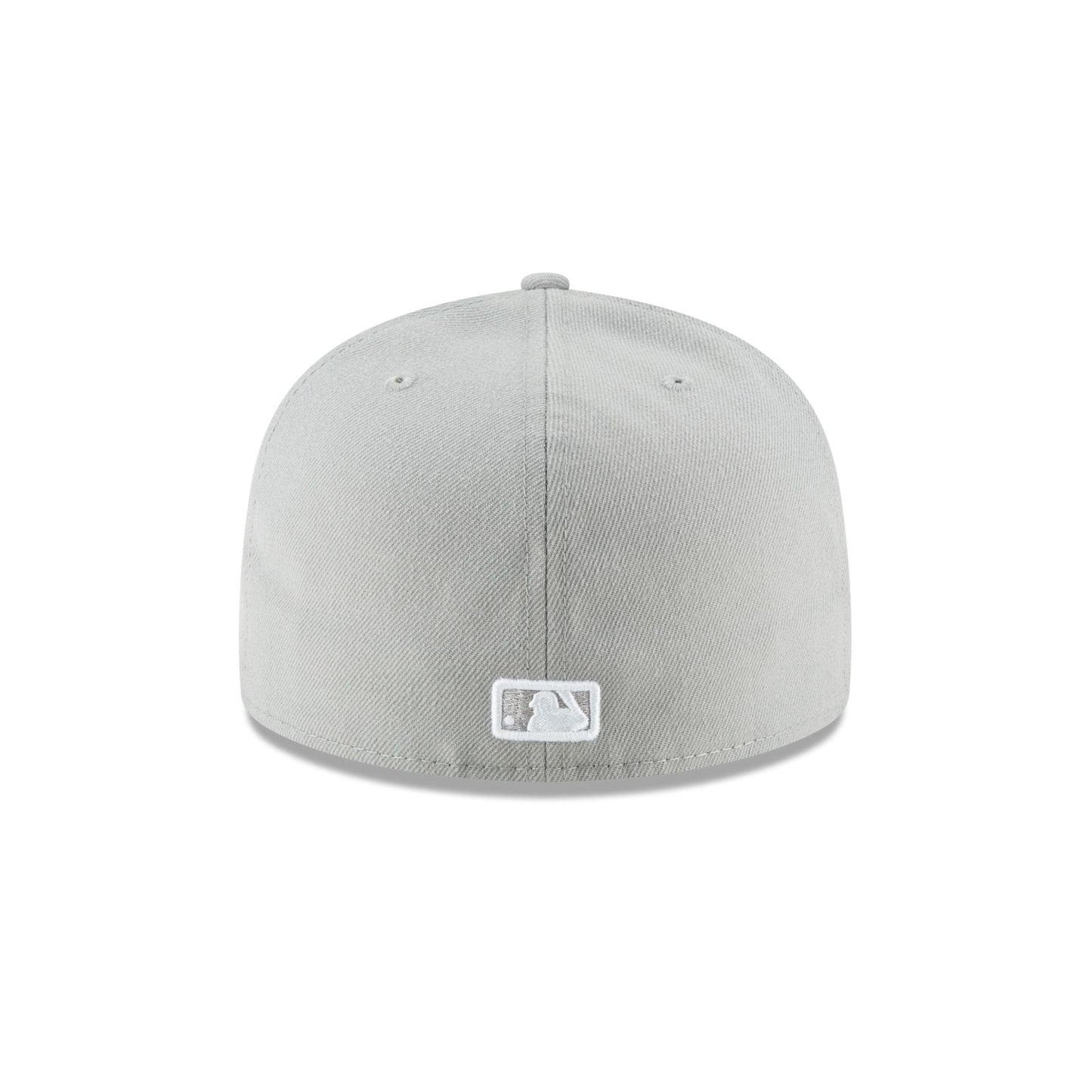 The Los Angeles Dodgers 2024 World Series Champions Gray 59FIFTY Fitted Cap features an embroidered Dodgers logo at the front panels with an official MLB Batterman logo at the rear and a 2024 World Series Champions patch at the right-wear side.