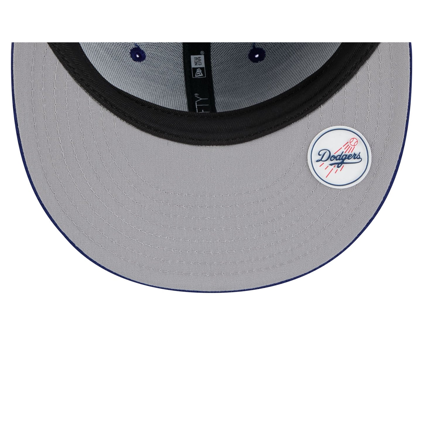 The Los Angeles Dodgers 2025 Clubhouse Alt 9FIFTY Snapback features an embroidered Dodgers alternate logo at the front panels with a dashmark mesh fabrication throughout. Additional details include a snapback closure at the rear and a silicone logo on a gray undervisor.