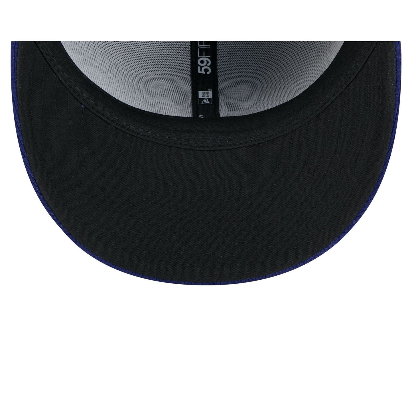 The Los Angeles Dodgers 2025 Spring Training 59FIFTY Fitted Cap features an embroidered Dodgers logo at the front panels with a matching MLB Batterman logo at the rear. Additional details include a pivot knit fabrication with a 2025 Spring Training patch at the right-wear side and a black undervisor.