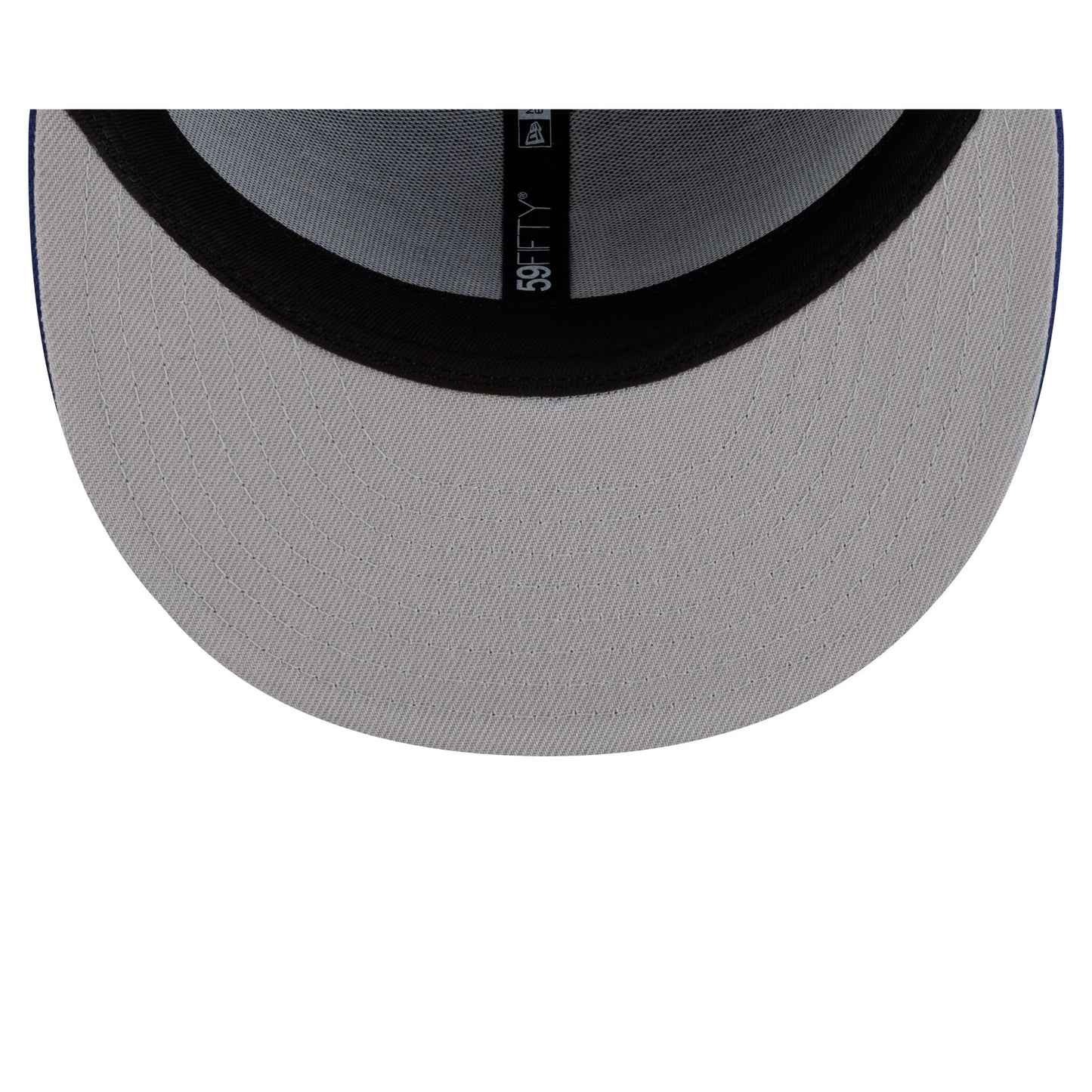 The Los Angeles Dodgers 2025 World Series Champions Gilded Sidepatch 59FIFTY Fitted Cap features an embroidered Dodgers logo at the front panels with a 2025 World Series Champions gold leaf patch at the right-wear side. Additional details include the MLB Batterman logo at the rear and a gray undervisor.