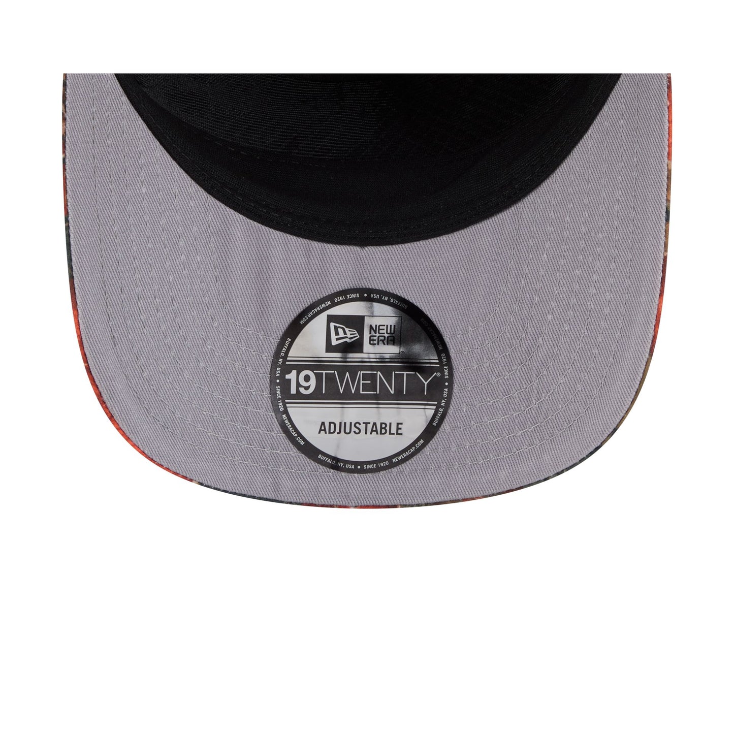 The Los Angeles Dodgers Amber Leaves 19TWENTY Adjustable Cap features an embroidered Dodgers logo at the front panels with a forest leaves pattern throughout. Additional details include an adjustable snapback closure at the rear and a gray undervisor.