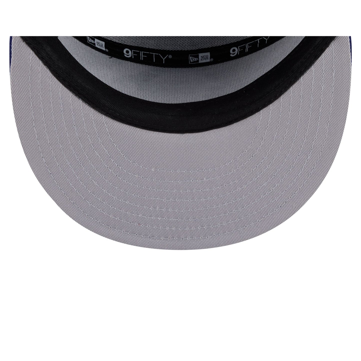 The Los Angeles Dodgers Batter Split Panel 9FIFTY Snapback features an embroidered MLB Batterman graphic at the front panels with a split crown construction. Additional details include a team logo at the right-wear side, an adjustable snapback closure at the rear, and a gray undervisor.