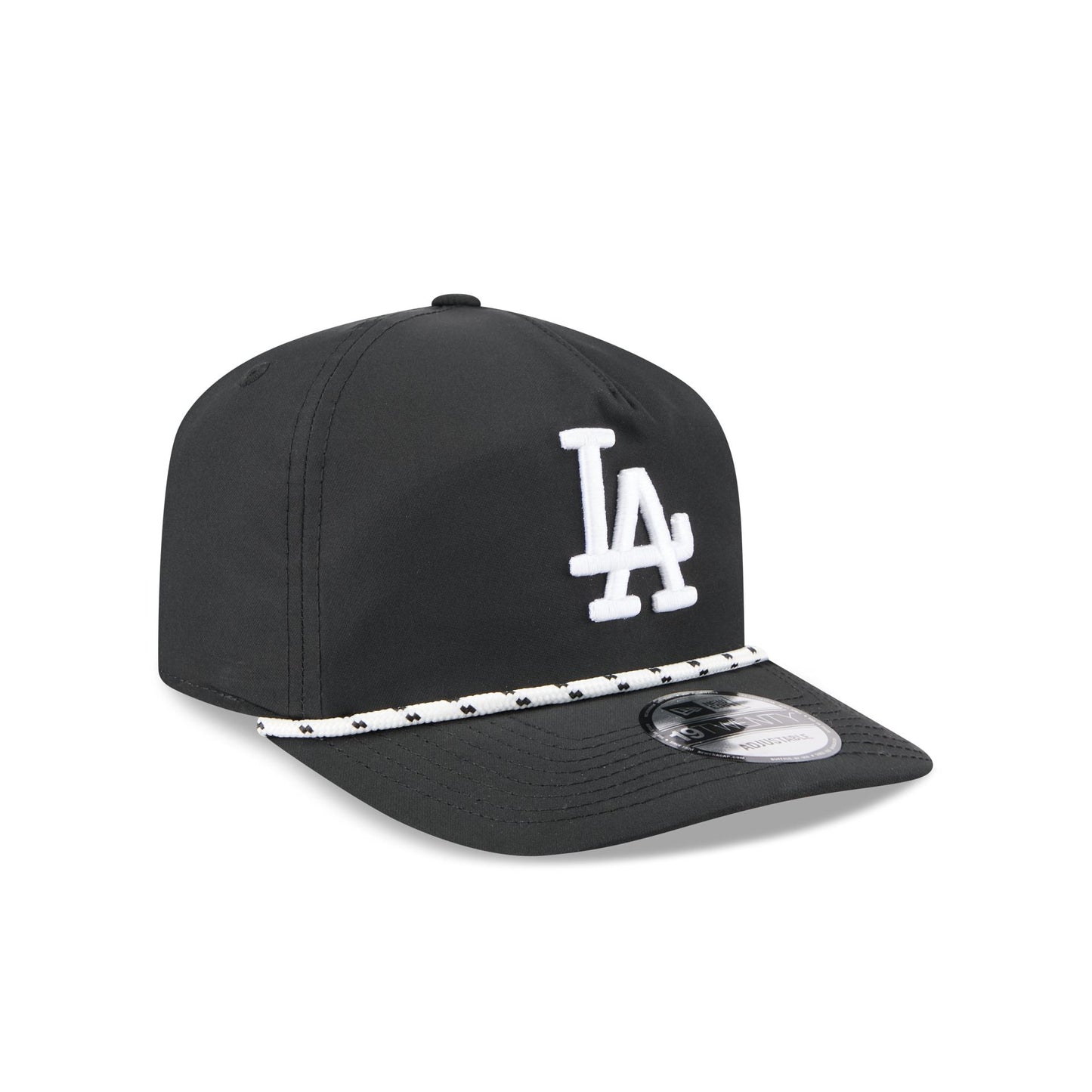The Los Angeles Dodgers Black and White Rope 19TWENTY Snapback features an embroidered Dodgers logo and rope at the front with a snapback closure at the rear and a gray undervisor.