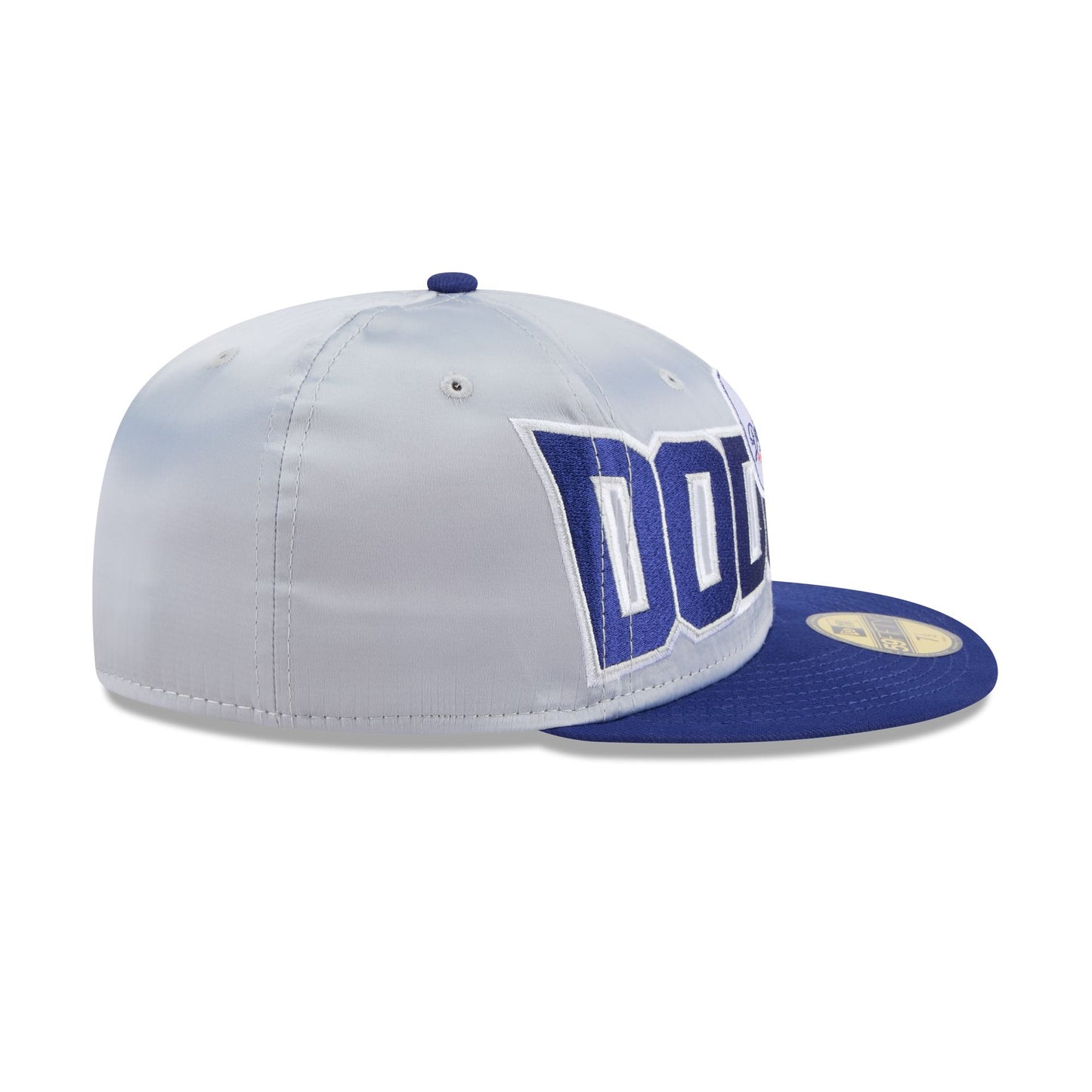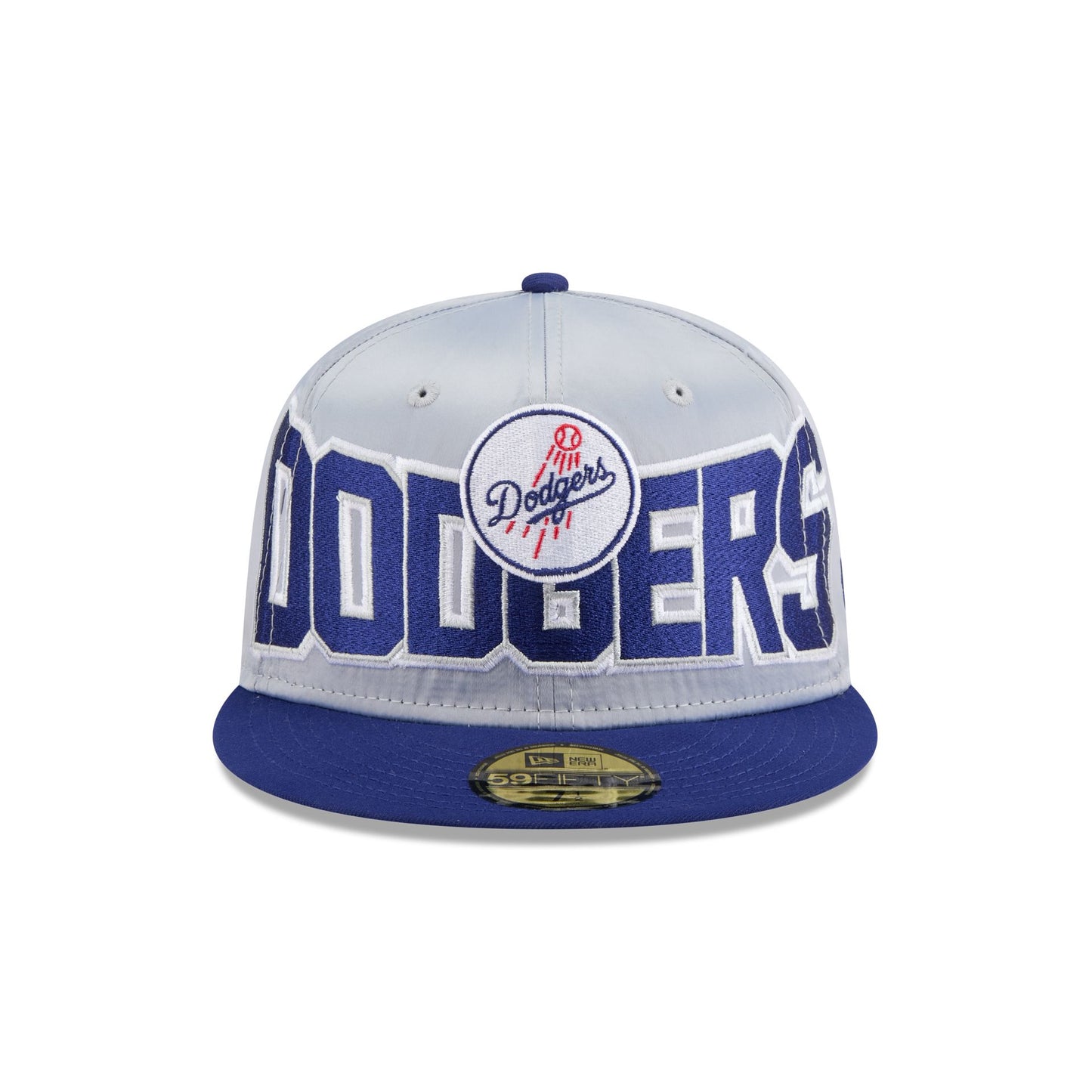 The Los Angeles Dodgers Bold Satin 59FIFTY Fitted Cap features an embroidered satin Dodgers Historic graphic at the front panels with a satin fabrication throughout. Additional details include a matching MLB Batterman logo at the rear and a gray undervisor.
