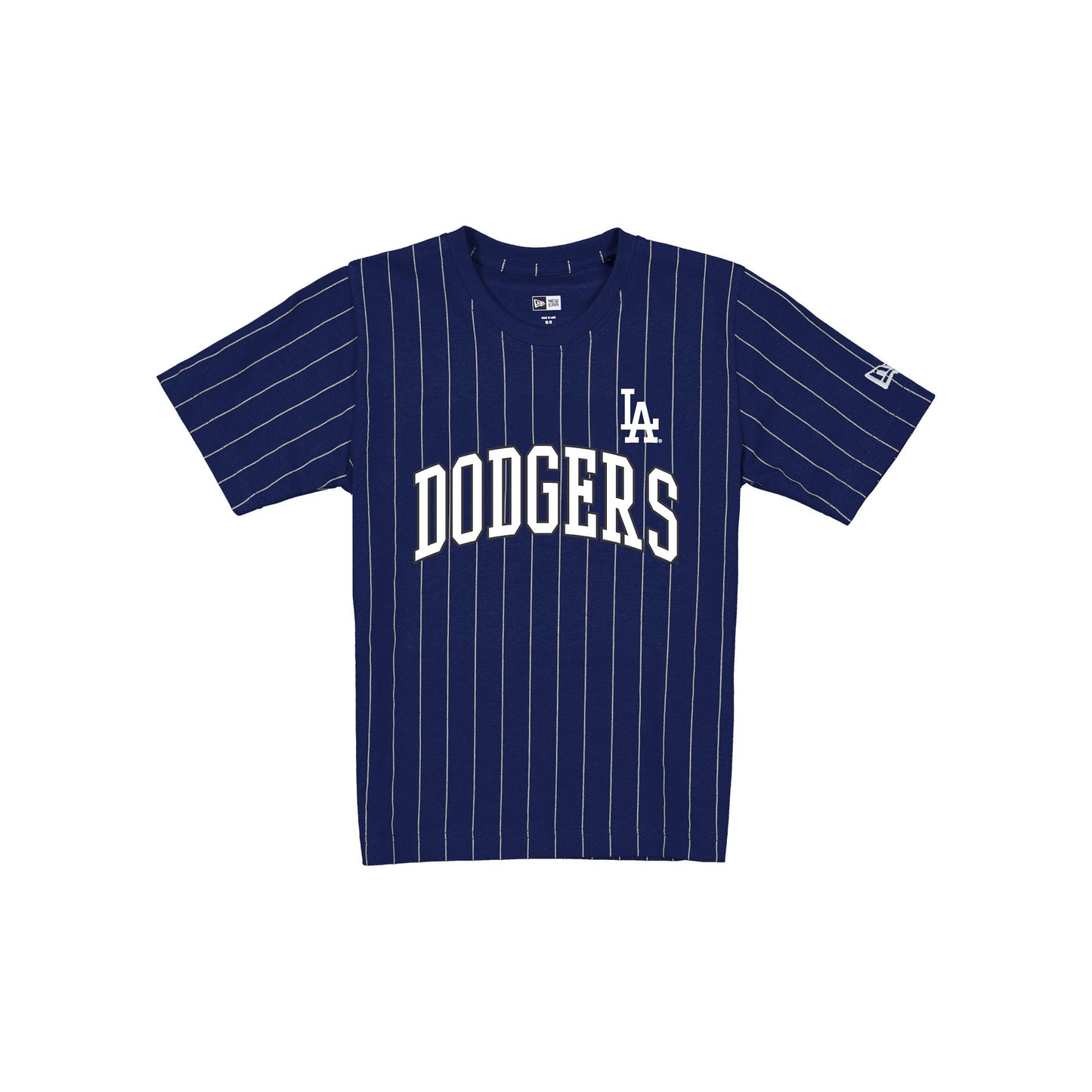 The Los Angeles Dodgers Boys Pinstripe T-Shirt features a screen-printed Dodgers wordmark and logo at the front.