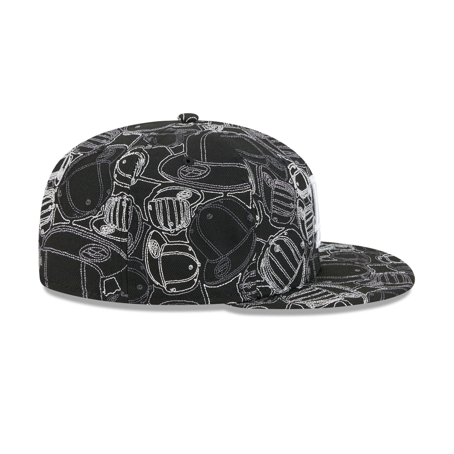 The Los Angeles Dodgers Cap Scramble 59FIFTY Fitted Cap features an embroidered Dodgers logo at the front panels with chainstitched allover cap patterned fabrication, an MLB Batterman logo at the rear, and a gray undervisor.