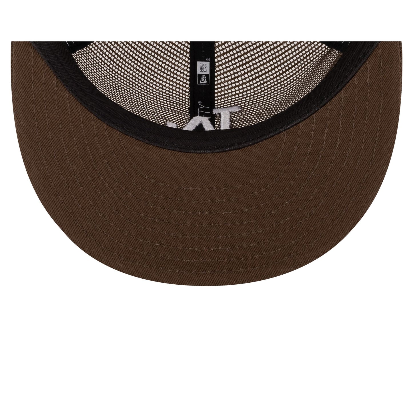 The Los Angeles Dodgers Chocolate Mesh 9FIFTY Snapback features an embroidered Dodgers logo at the front panels against an all mesh fabrication throughout the cap. Additional details include a 1988 World Series patch at the right-wear side and a snapback closure at the rear.