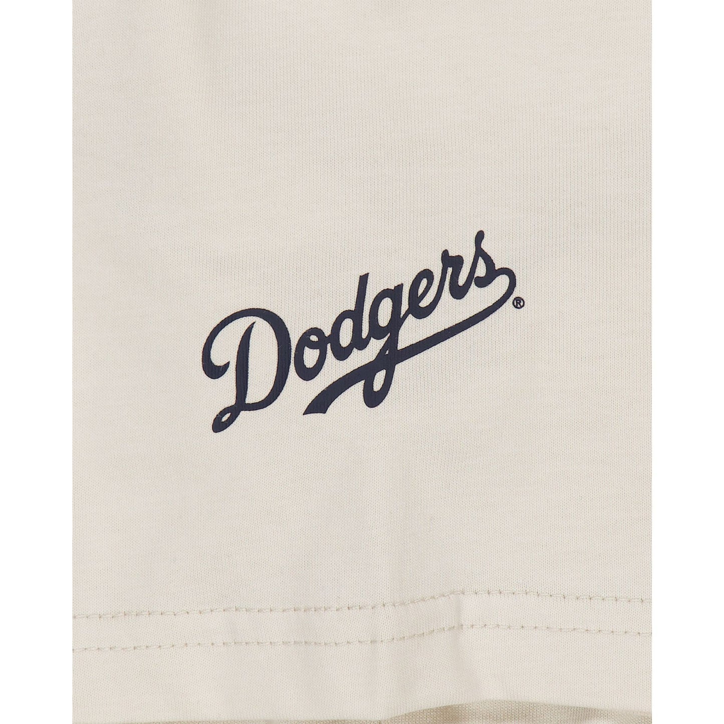 The Los Angeles Dodgers City Connect Women's T-Shirt features a screen-printed Dodgers wordmark above a team logo at the front with an alternate team wordmark at the left sleeve.