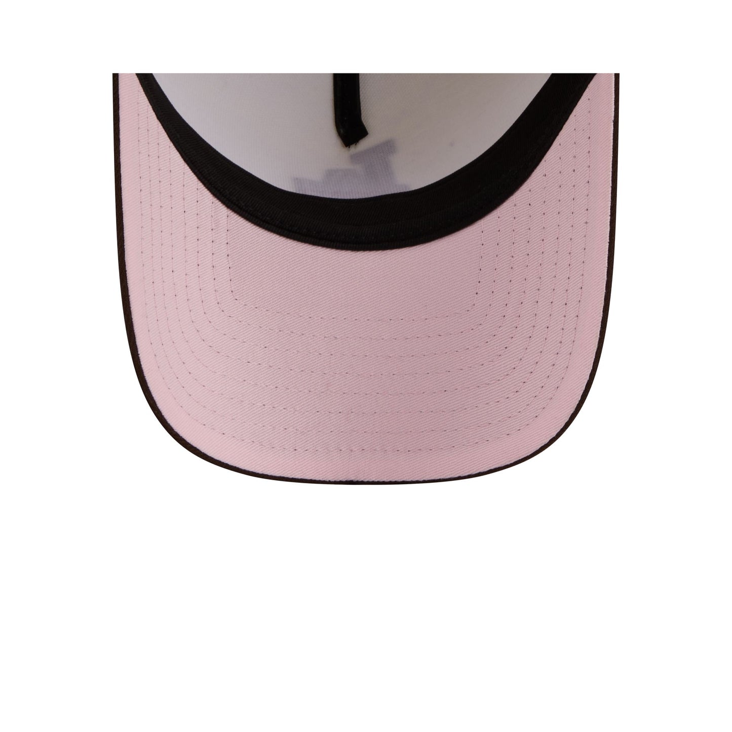 The Los Angeles Dodgers City Script 9FORTY A-Frame Snapback features an embroidered Dodgers logo at the front panels with a city script at the right-wear side. Additional details include an adjustable heart-shaped snapback closure at the rear and a pink undervisor.