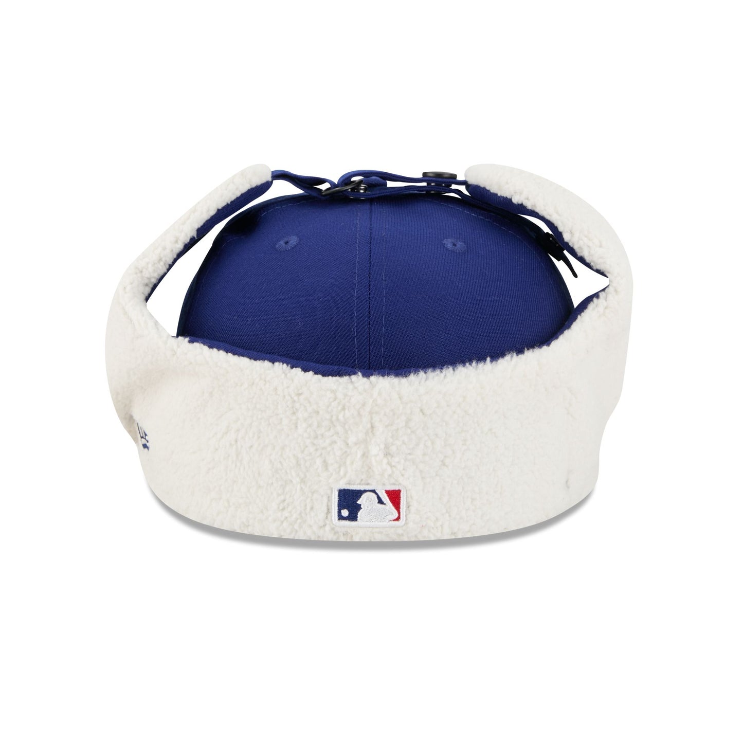 The Los Angeles Dodgers Classic Dog Ear 59FIFTY Fitted Cap features an embroidered Dodgers logo at the front panels with sherpa ear covers with a snap button closure. Additional details include the MLB Batterman logo at the rear and a gray undervisor.
