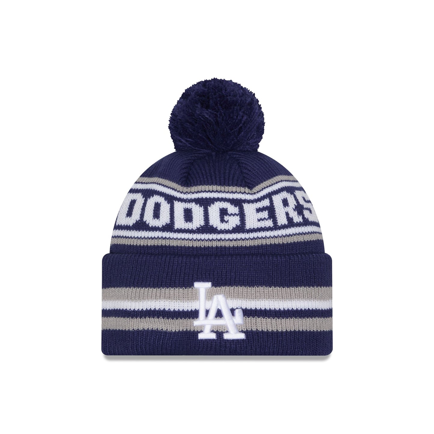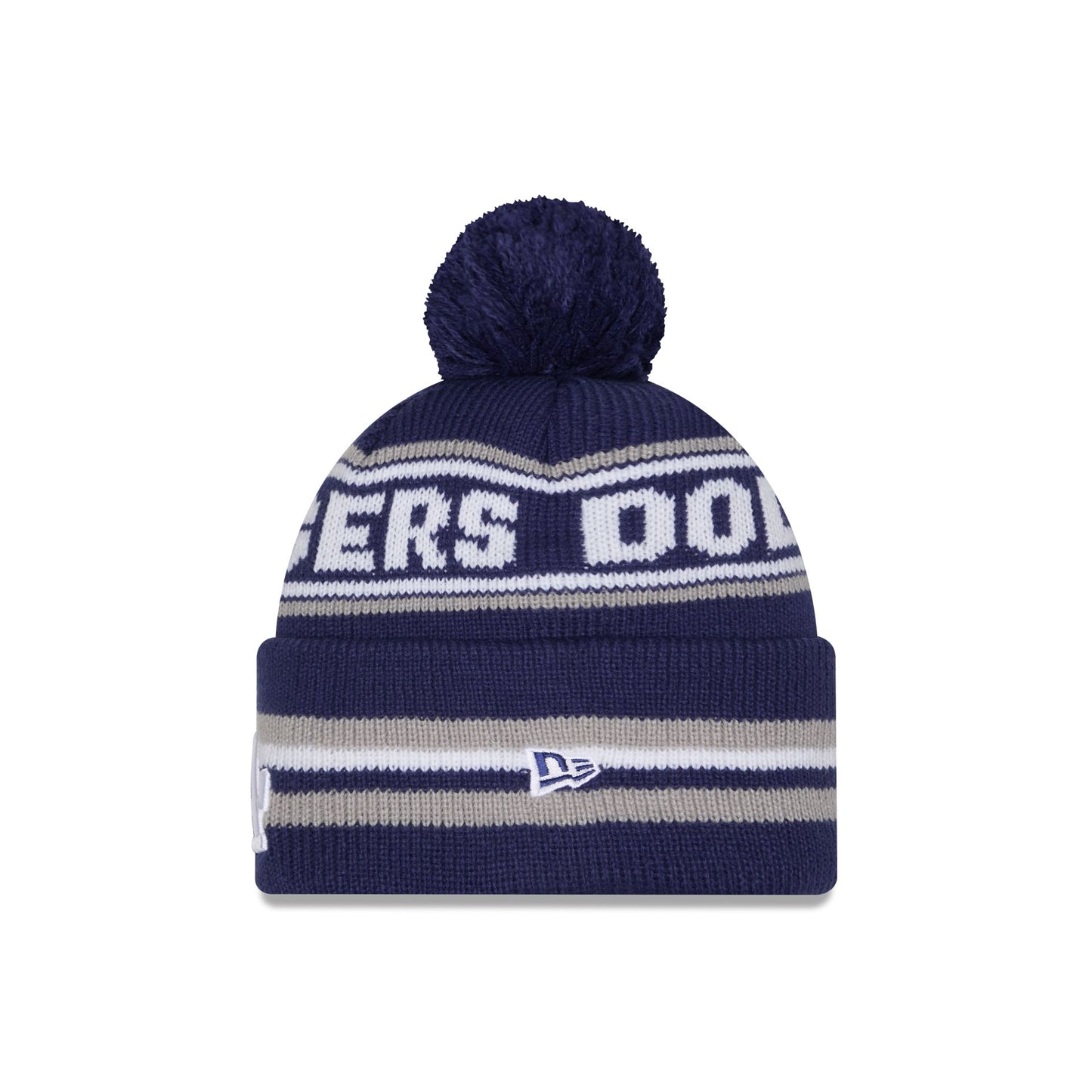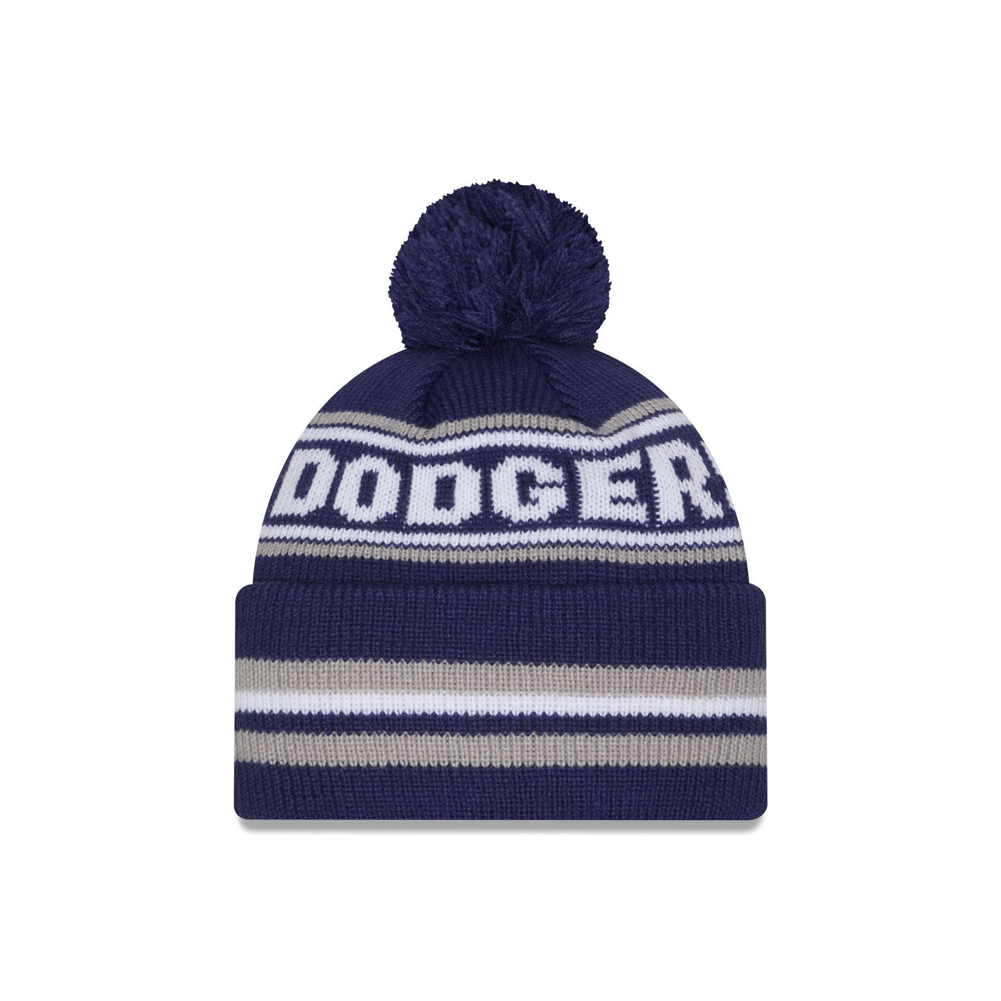 The Los Angeles Dodgers Classic Pom Knit Hat features an embroidered Dodgers logo at the front cuff with a wordmark at the crown and a one-time removable pom.