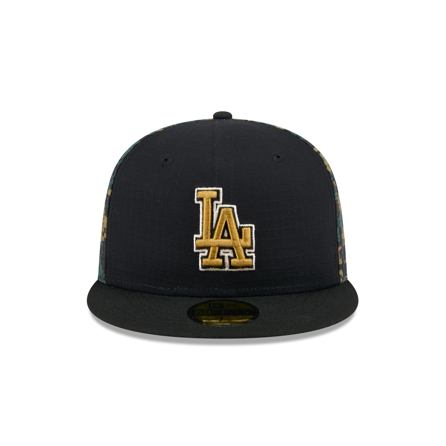 The Los Angeles Dodgers Digi Camo 59FIFTY Fitted Cap features an embroidered Dodgers logo at the front panels with a matching MLB Batterman logo at the rear. Additional details include a digi camo rear, a 50th Anniversary patch at the right-wear side, and a gray undervisor.