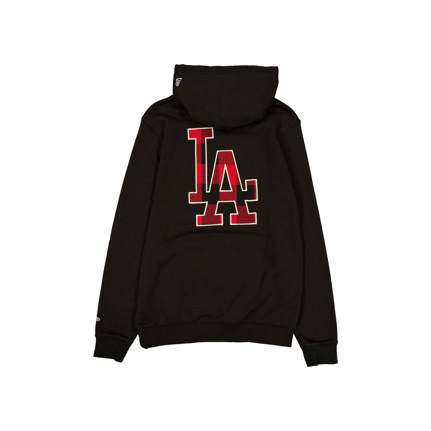 The Los Angeles Dodgers Evergreen Check Hoodie features an embroidered applique Dodgers checkered wordmark at the front with a matching interior hood and logo at the rear. Additional details include kangaroo pockets and adjustable drawstrings at the hood.