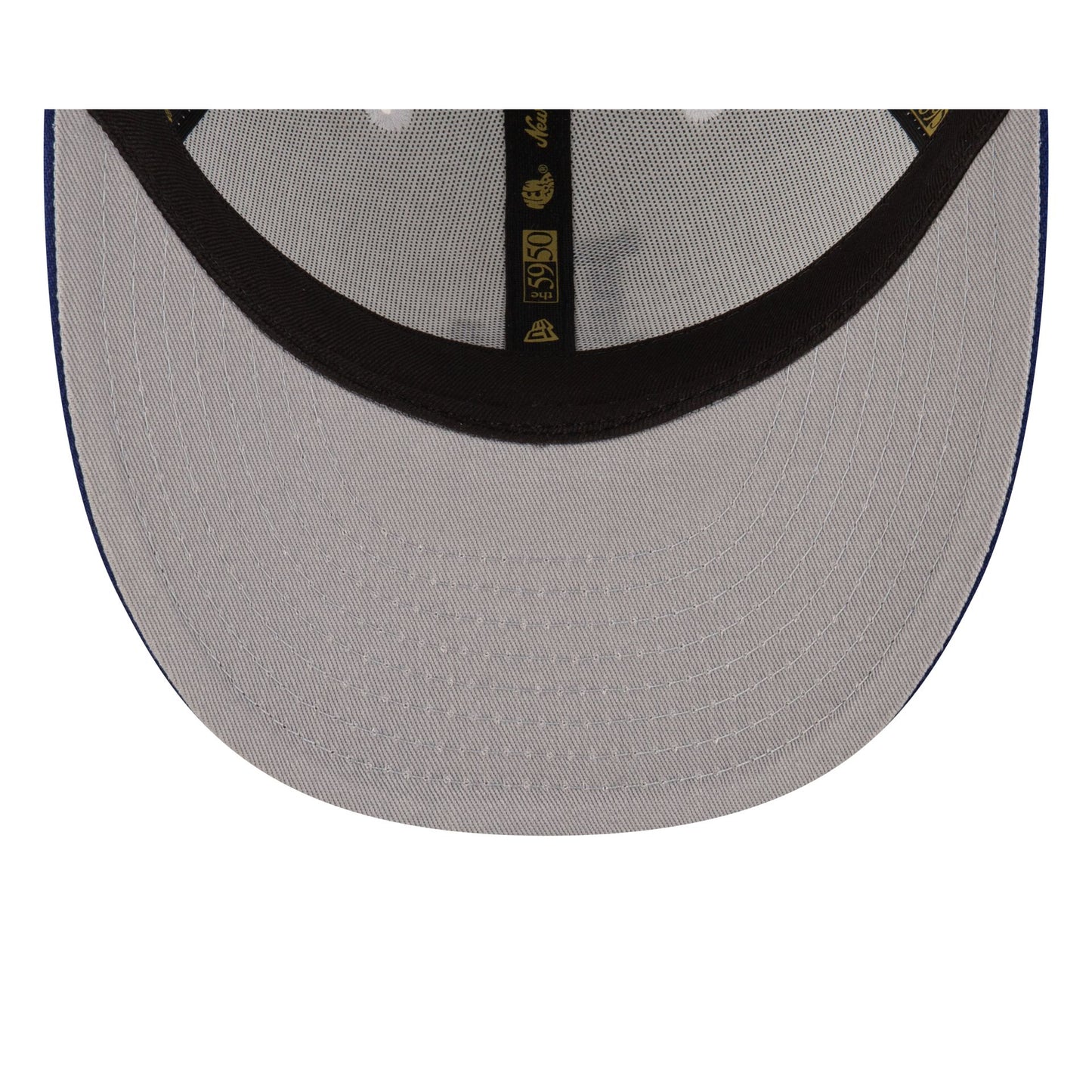The Los Angeles Dodgers Floral Shine Low Profile 59FIFTY Fitted Cap features an embroidered Dodgers logo at the front panels with a matching MLB Batterman logo at the rear. Additional details include a satin fabrication throughout the cap and a gray undervisor. This cap has a pre-curved visor.