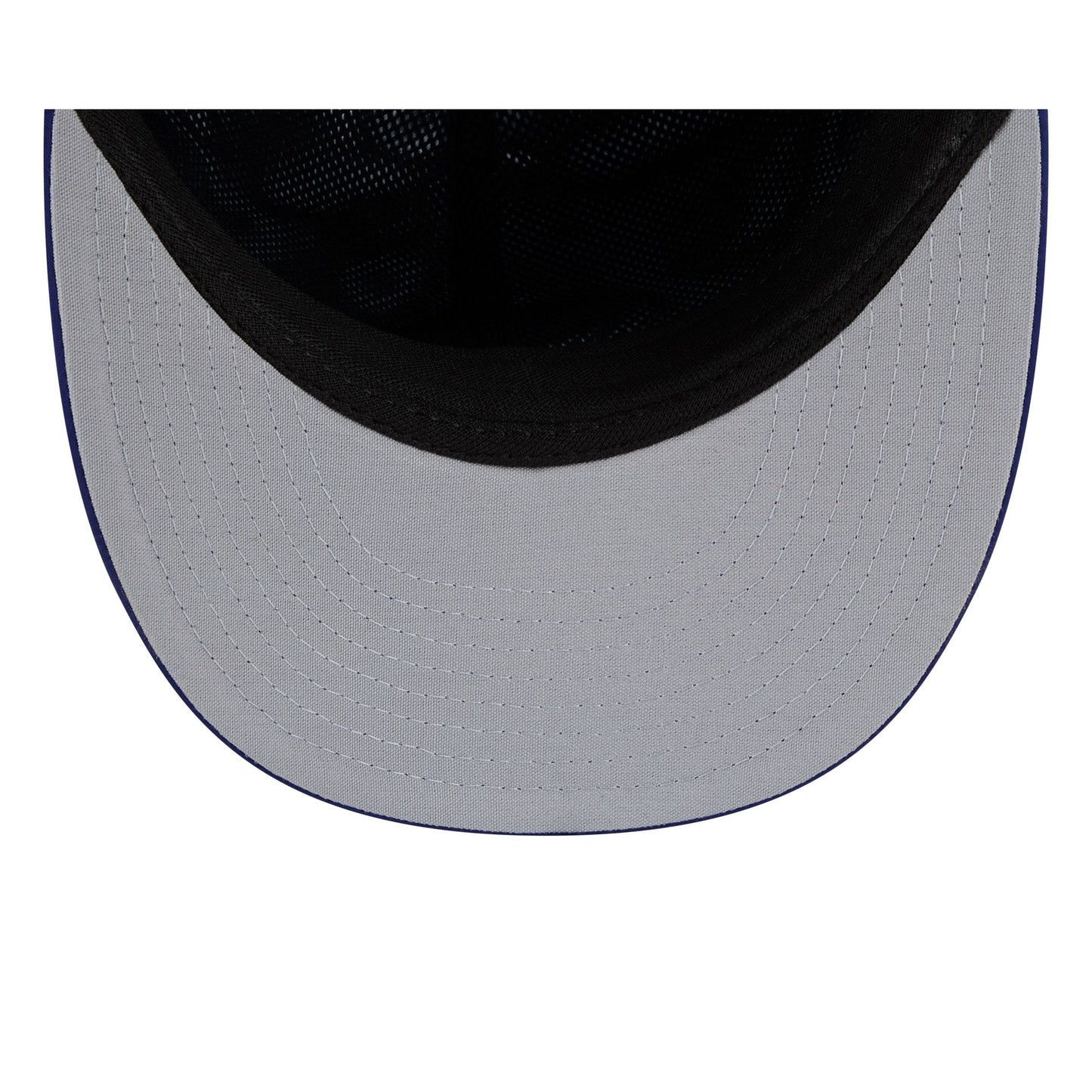 The Los Angeles Dodgers GORE-TEX 59FIFTY Fitted Cap features an embroidered Dodgers logo at the front panels with a metallic sheen silicone New Era Flag logo and GORE-TEX logo at the left-wear side. Additional details include the MLB Batterman logo at the rear, a gray undervisor, and a polyester fabrication throughout the cap. It is waterproof, breathable, and lightweight. This 59FIFTY comes with a pre-curved visor.