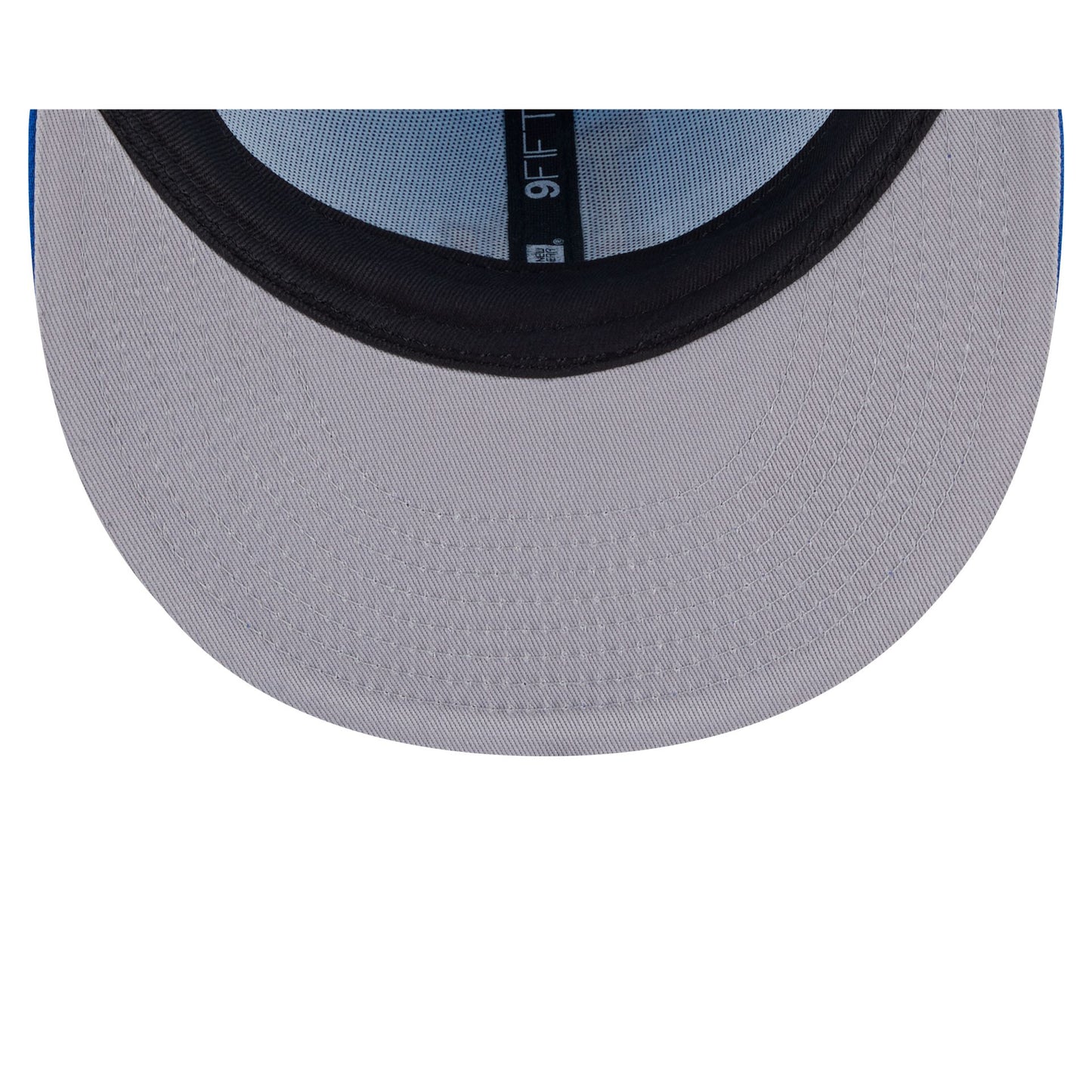 The Los Angeles Dodgers Independence Day 2025 9FIFTY Snapback features an embroidered American flag themed Dodgers logo at the front panels with a matching MLB Batterman logo above a snapback closure at the rear, a blue visor, and a gray undervisor.