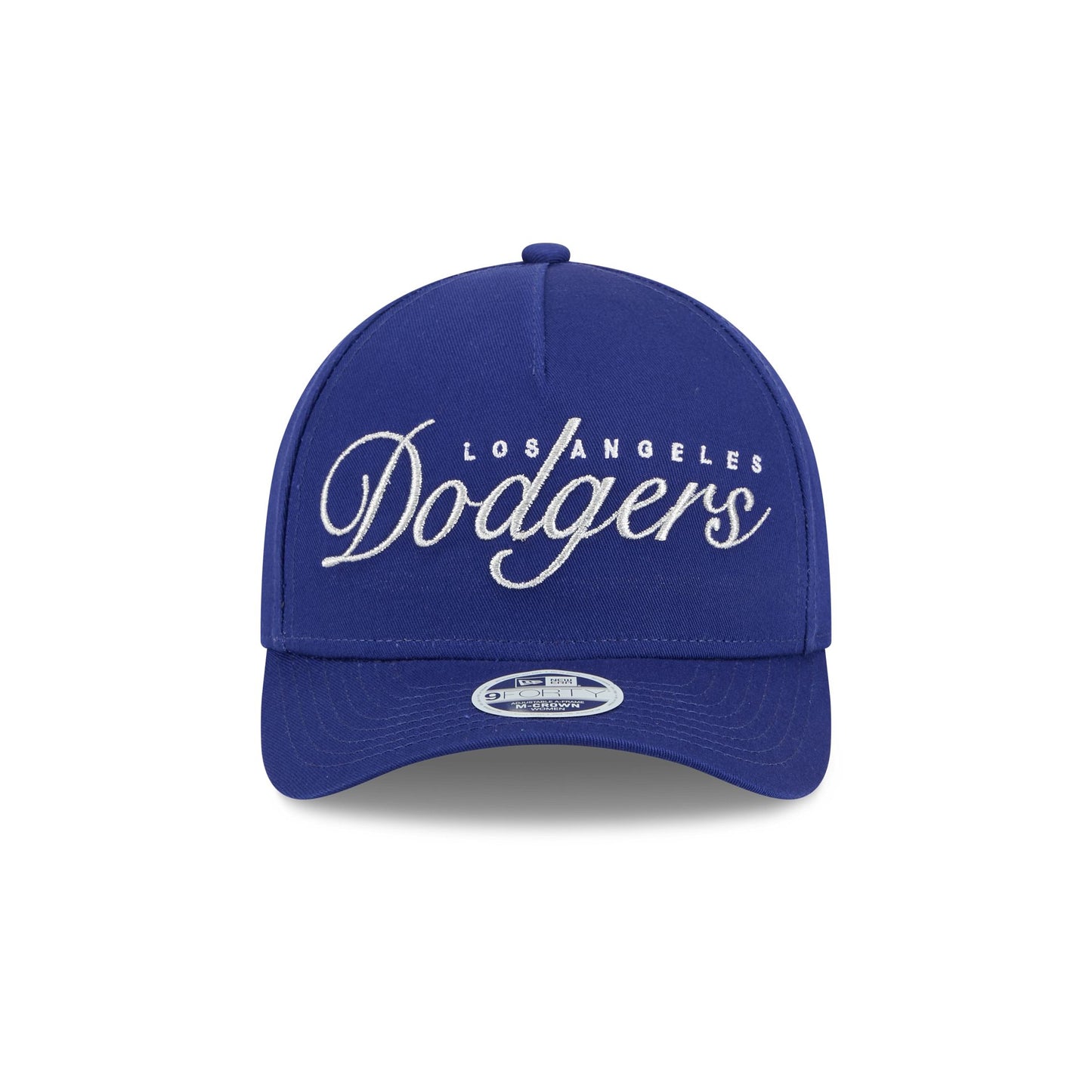 The Los Angeles Dodgers Metallic Women's 9FORTY M-Crown A-Frame Snapback features an embroidered Dodgers metallic script wordmark at the front panel with a snapback closure at the rear and a satin undervisor.