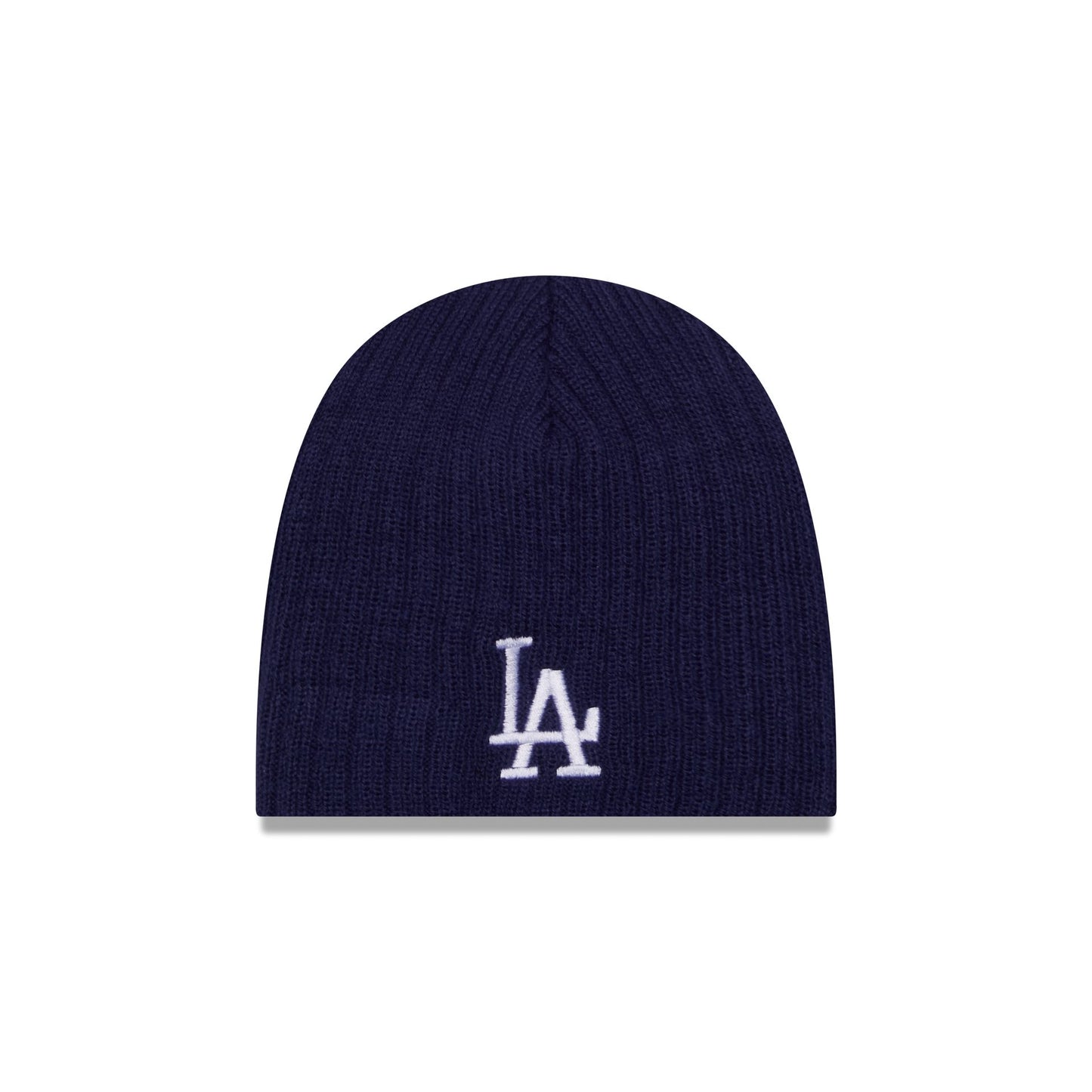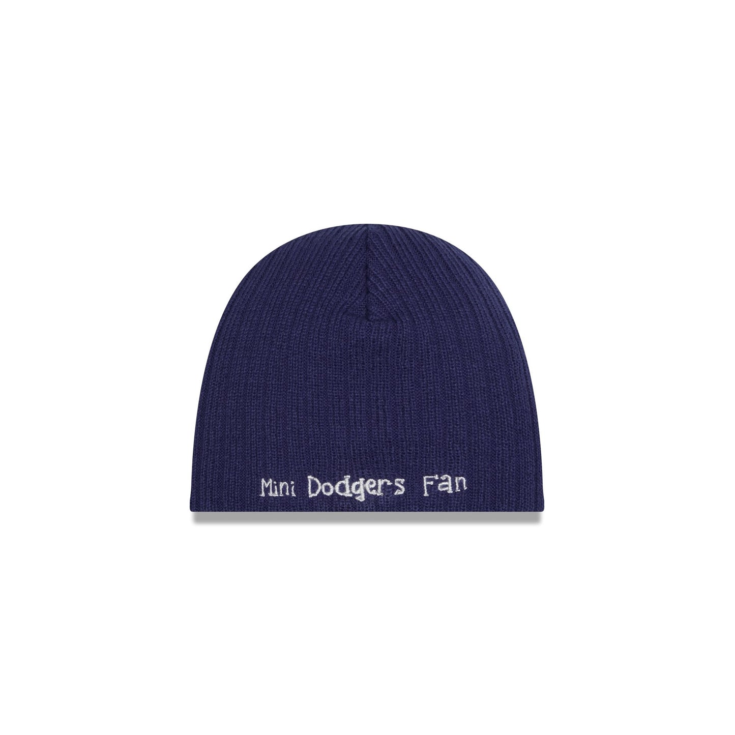 The Los Angeles Dodgers Mini Fan Kids Skull Knit features an embroidered Dodgers logo at the front with a mini fan script at the rear and New Era Flag at the left-wear side